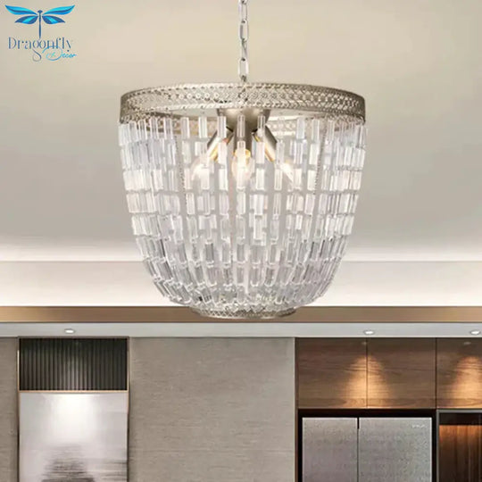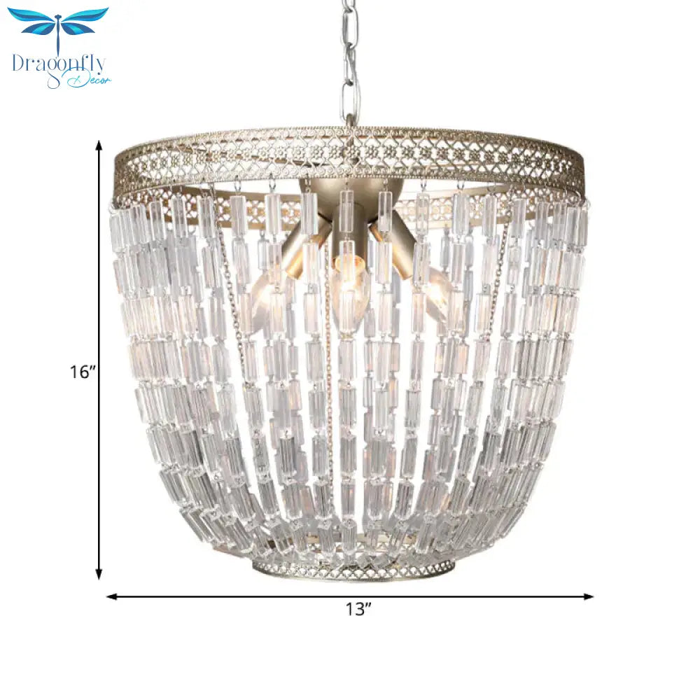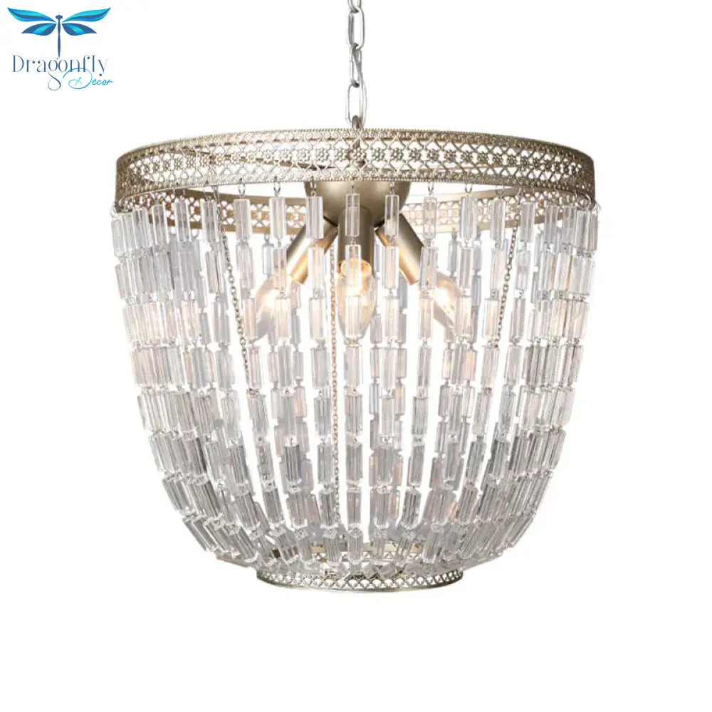 Dome Pendant Chandelier Traditional Crystal 3 Bulbs Aged Silver Hanging Ceiling Light