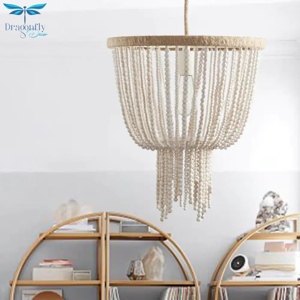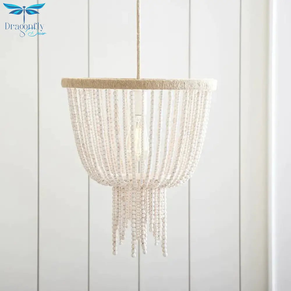 Dome Wood Bedroom Hanging Chandelier Contemporary 1 Head White Ceiling