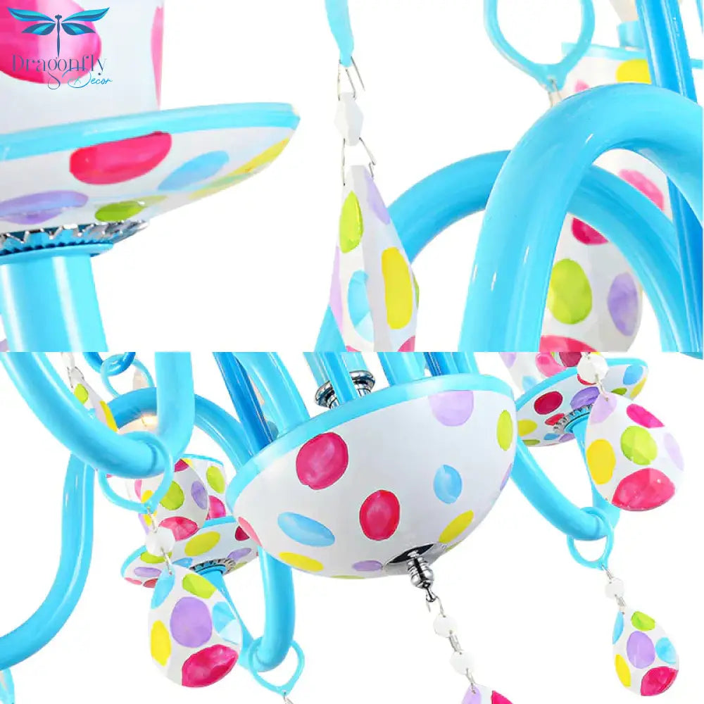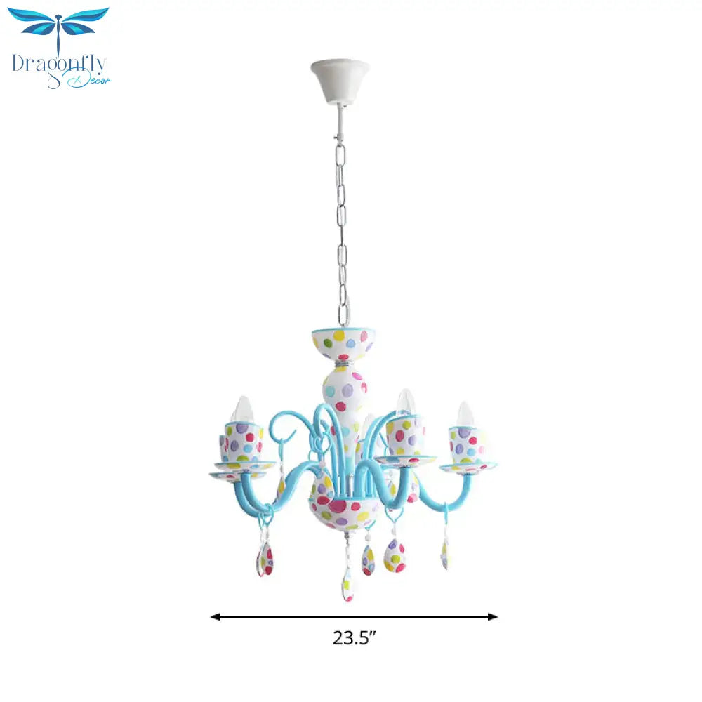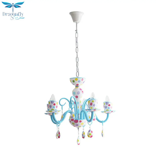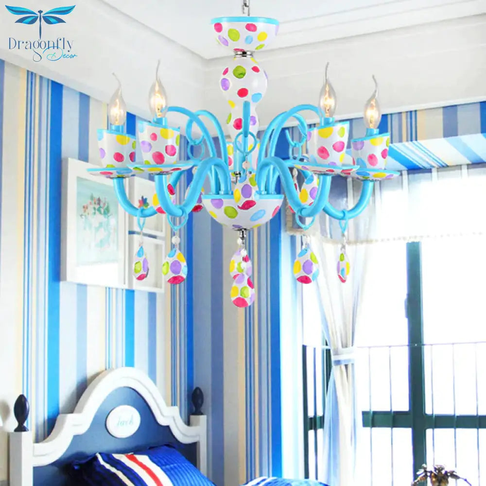 Dot Candle Boys Room Chandelier with Crystal Metal Multi-Head Cute Pendant Light in Blue