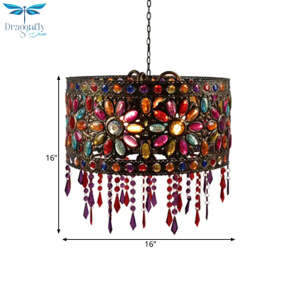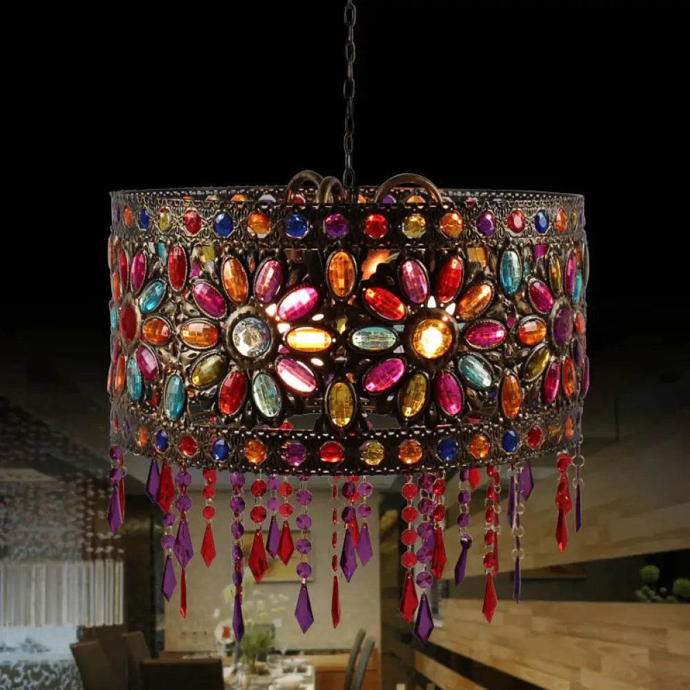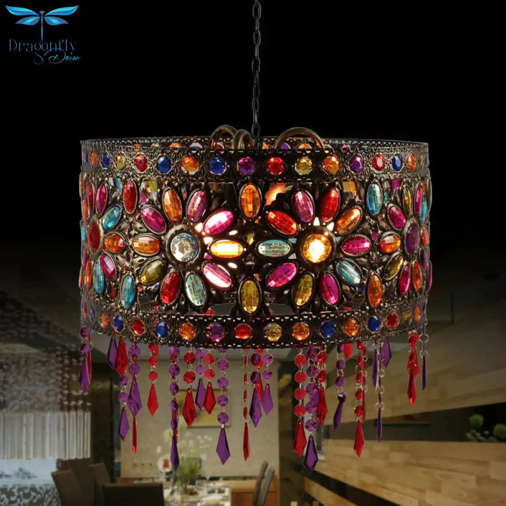 Drum Restaurant Chandelier Lighting Art Deco Metal 3 Bulbs White/Black Pendant Light Fixture with Crystal Accent