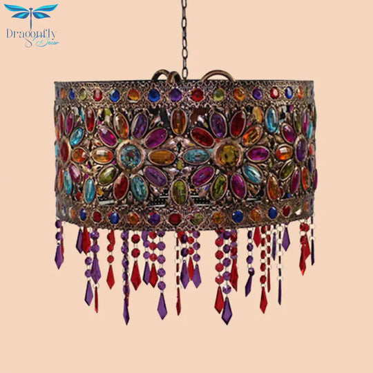 Drum Restaurant Chandelier Lighting Art Deco Metal 3 Bulbs White/Black