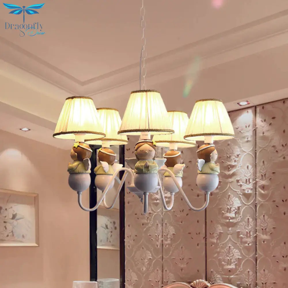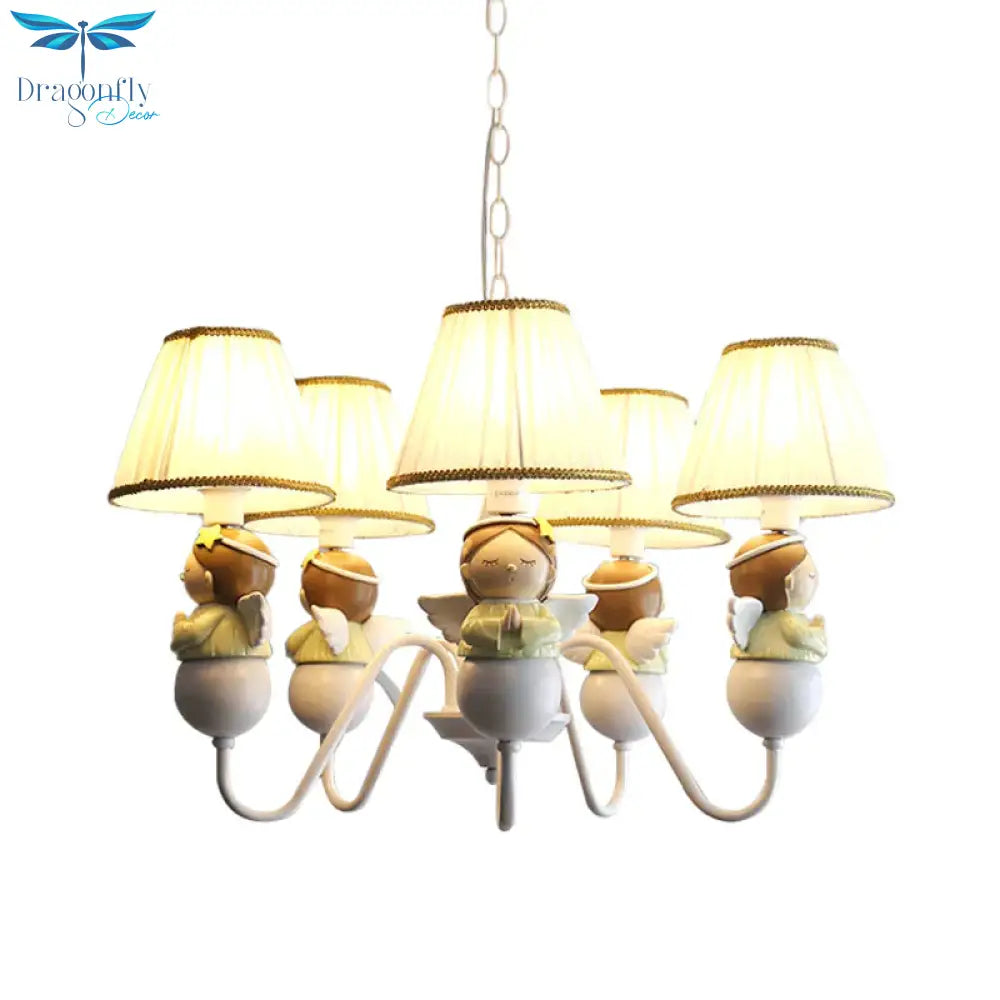 Fabric Conical Hanging Light Cartoon 5 Heads White Chandelier Lamp with Angel Decoration
