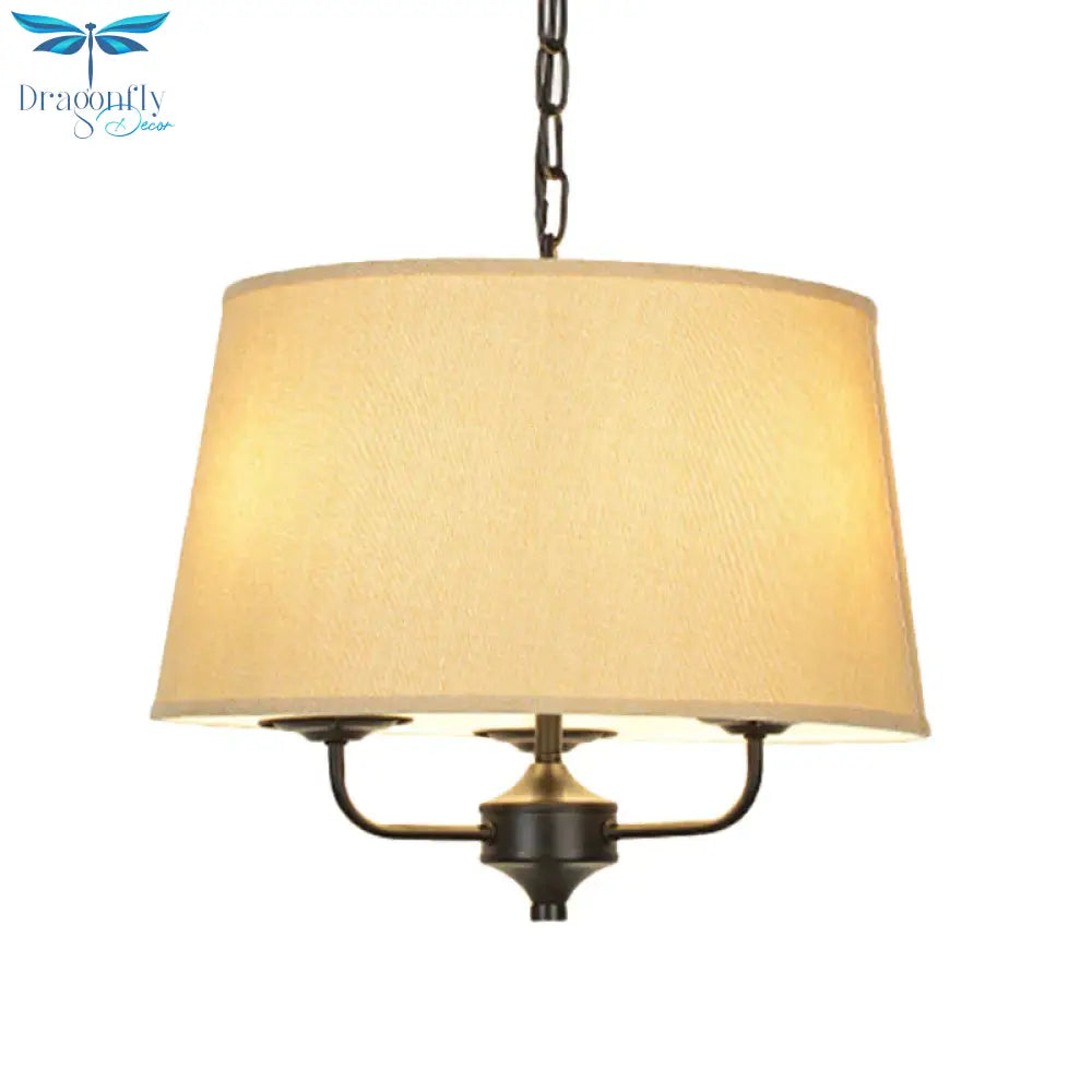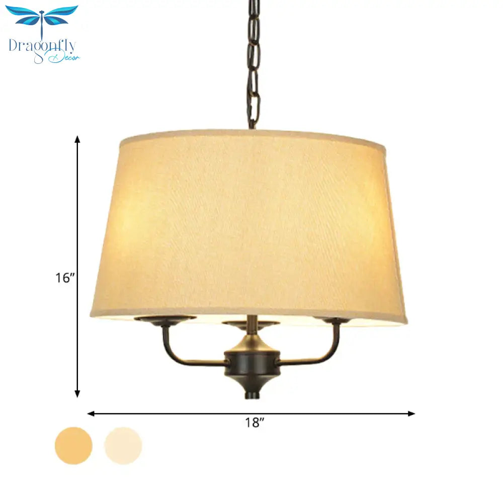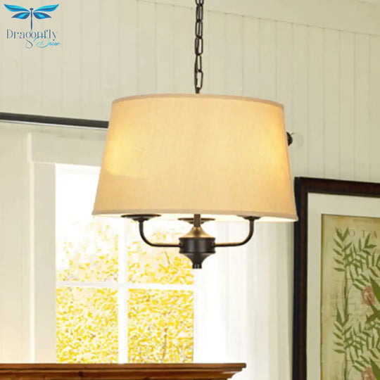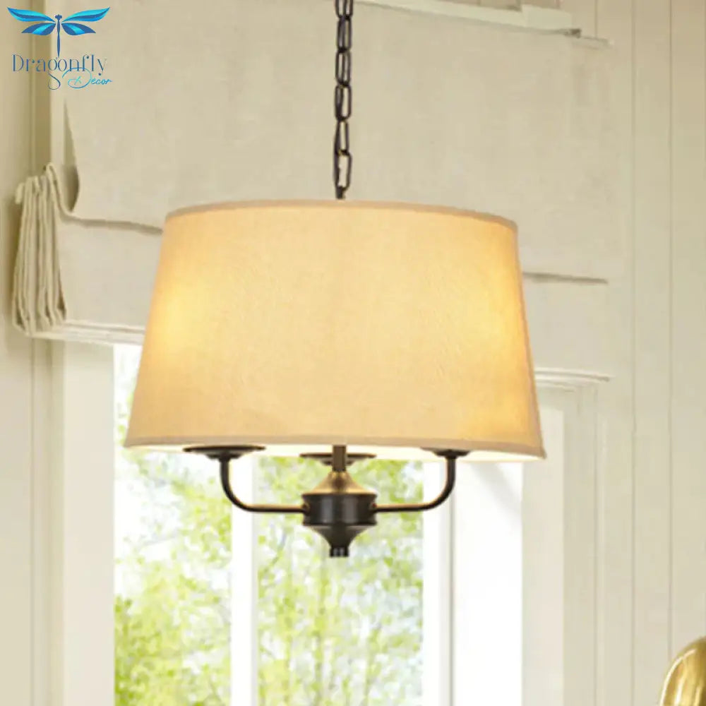 Fabric Drum Shade Hanging Chandelier Traditional 3 Lights Bedroom Pendant Light in Flaxen/White