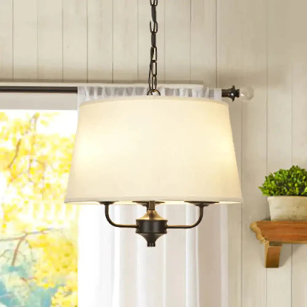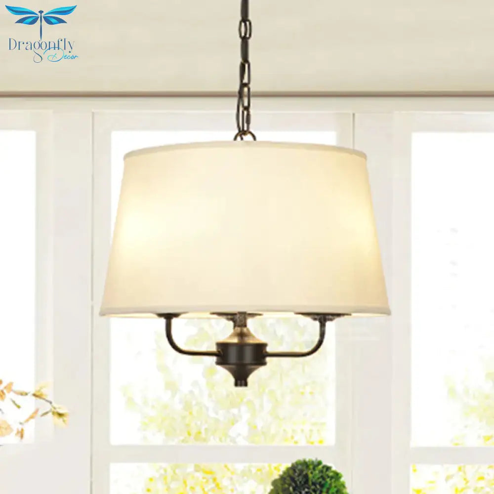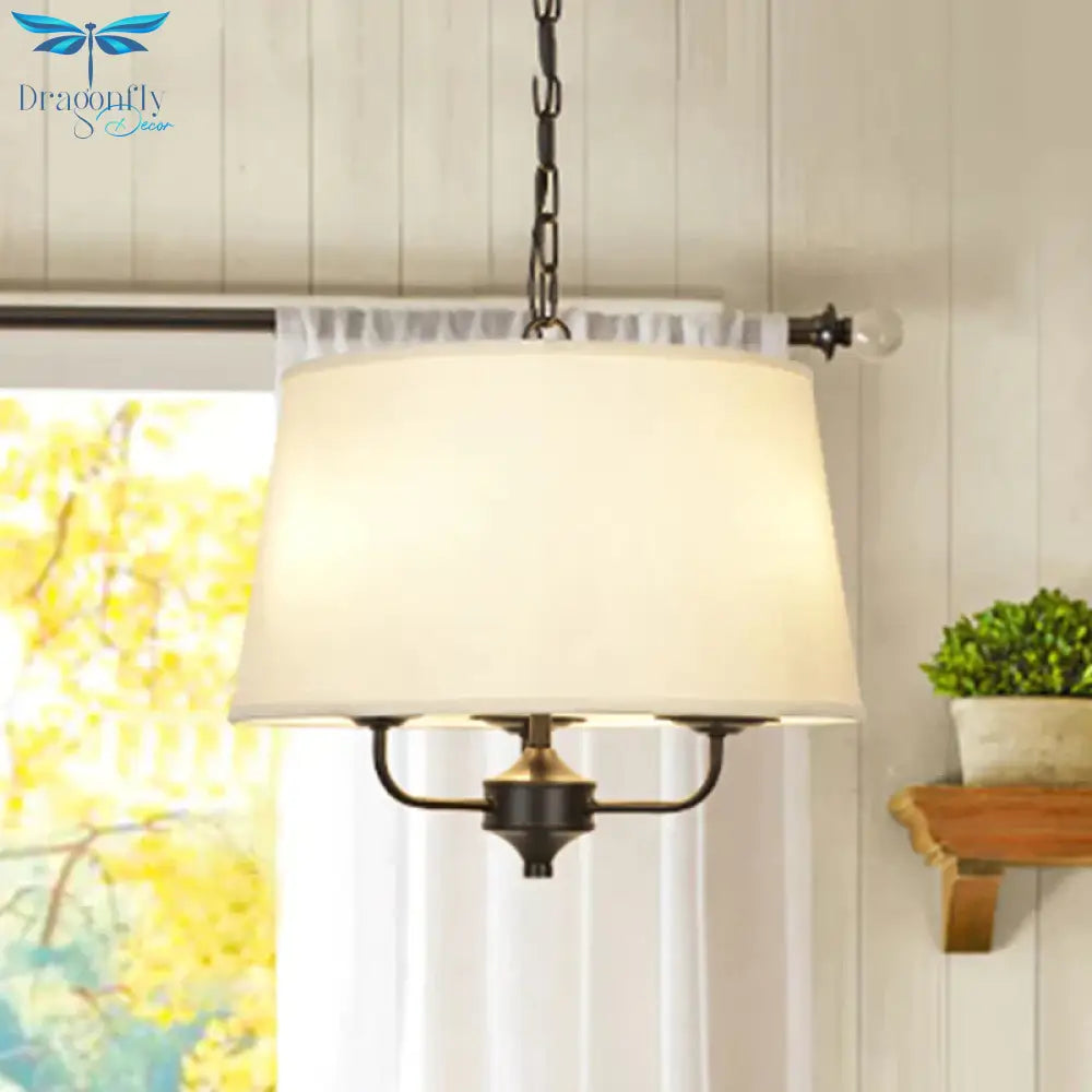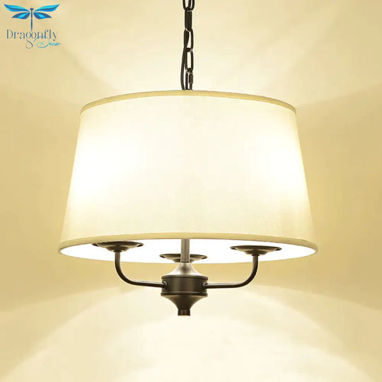 Fabric Drum Shade Hanging Chandelier Traditional 3 Lights Bedroom Pend