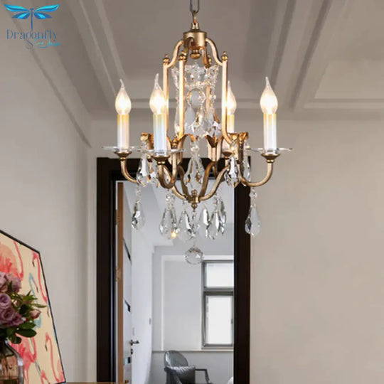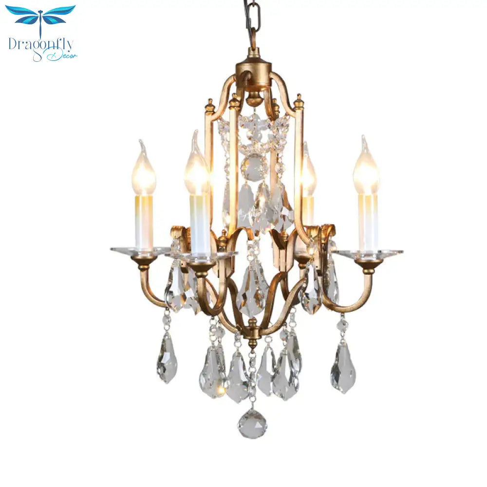 Faceted Ball Finial Bronze Ceiling Chandelier Candle Design 4-Bulb Classic Suspension Pendant Light