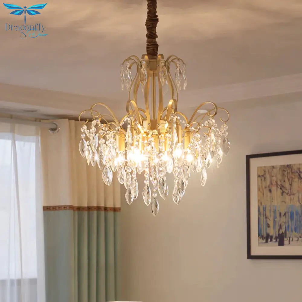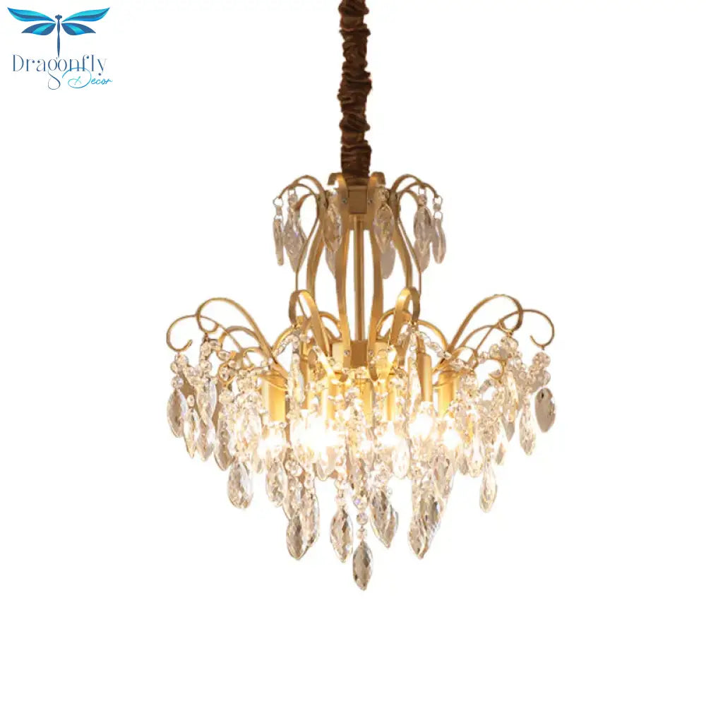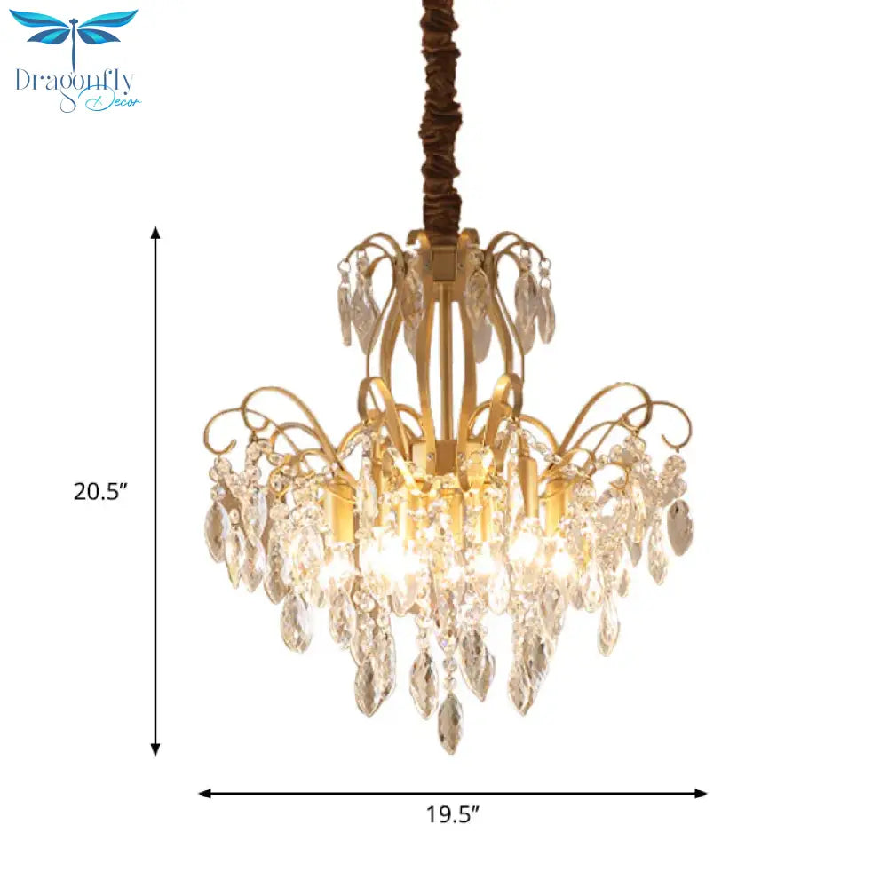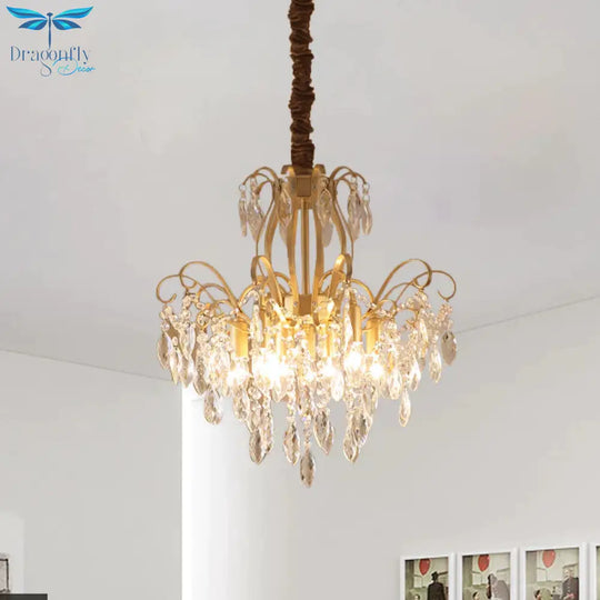 Faceted Crystal Waterfall Pendant Traditionalism 7-Bulb Living Room Hanging Chandelier in Gold