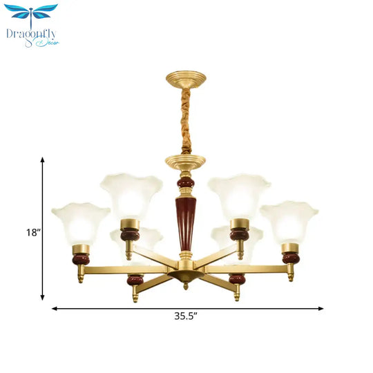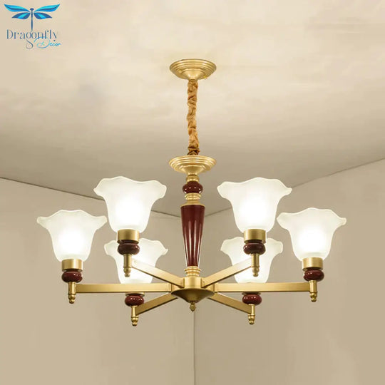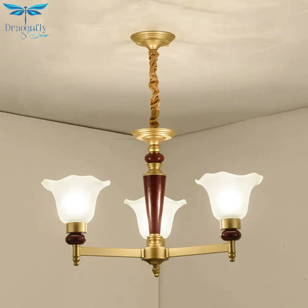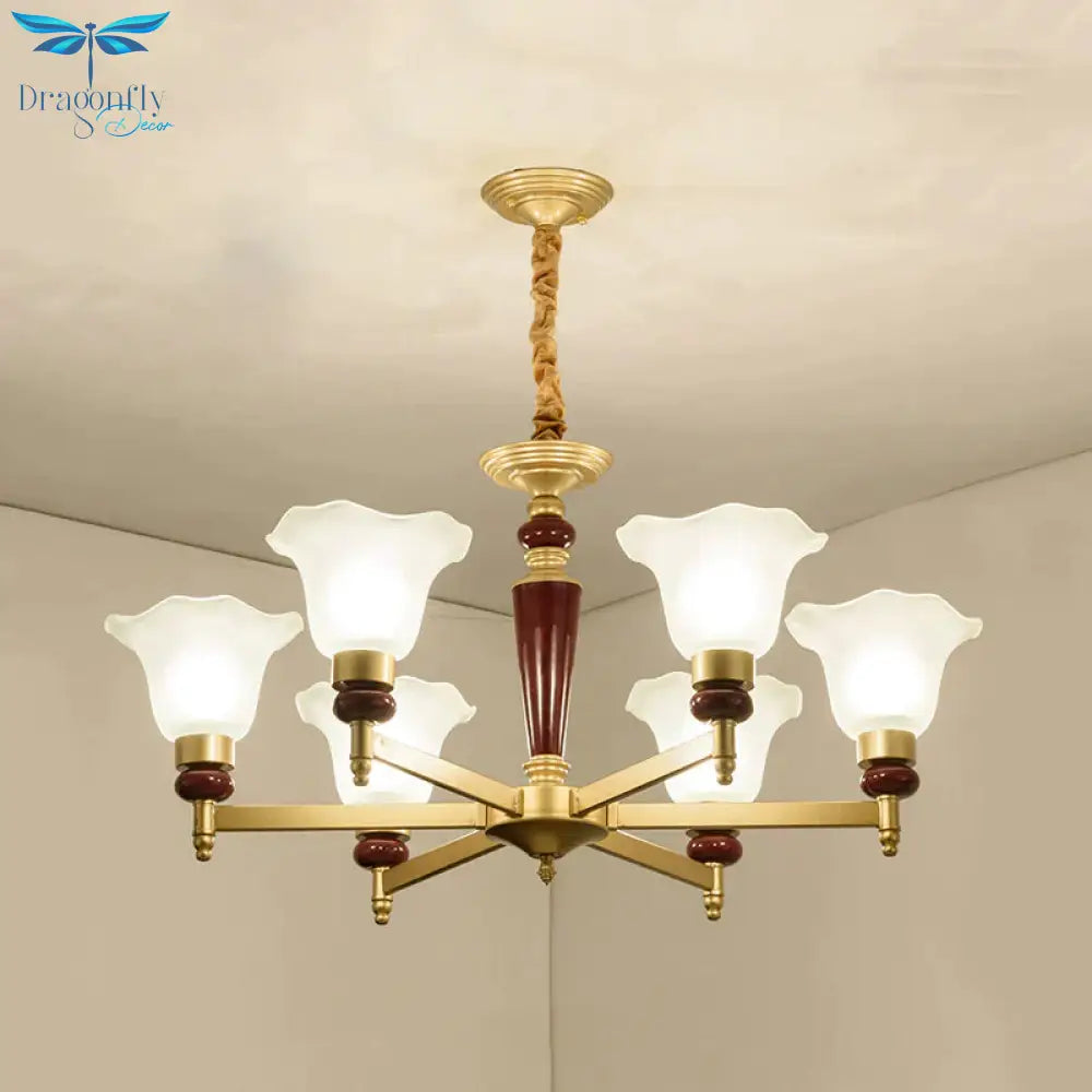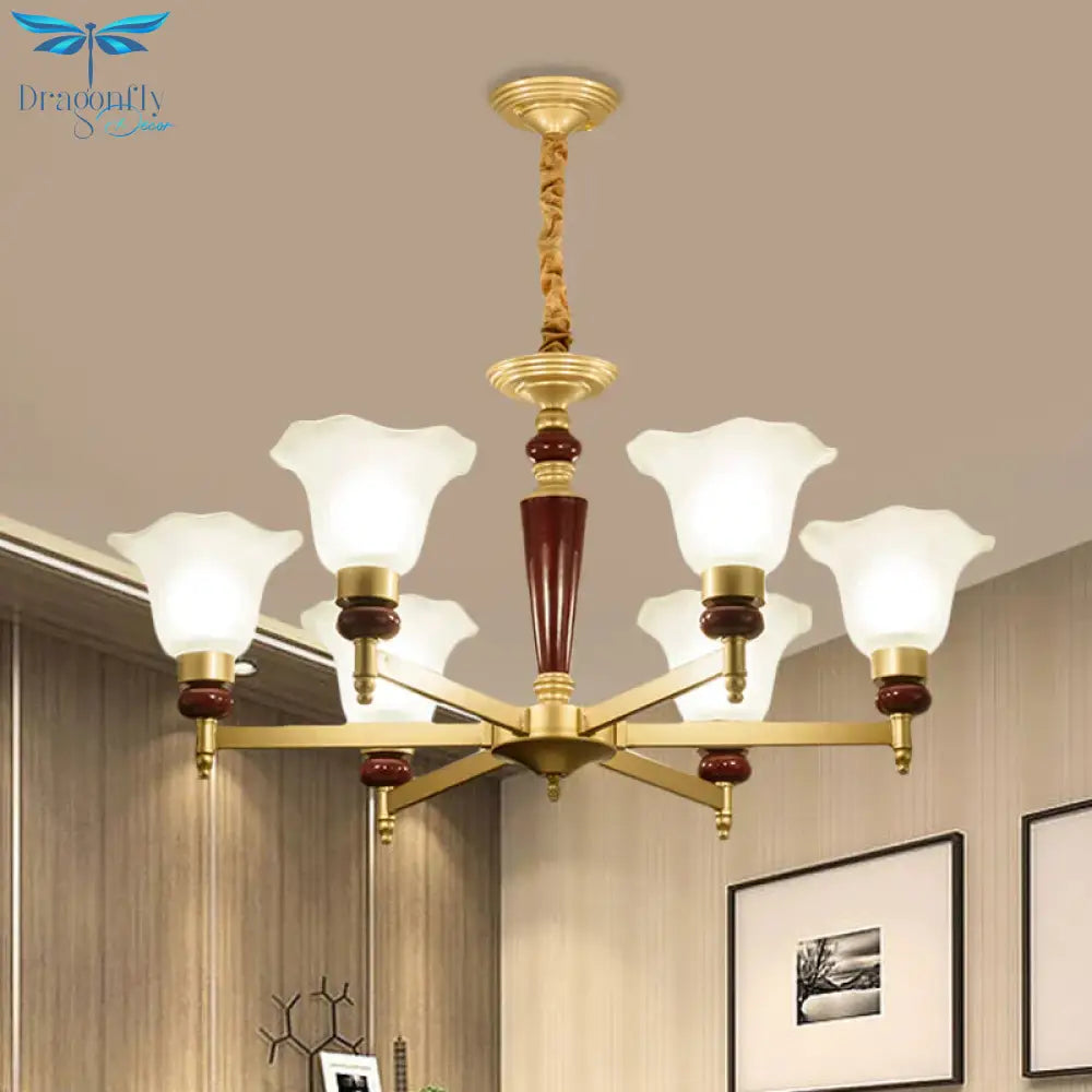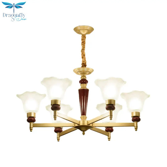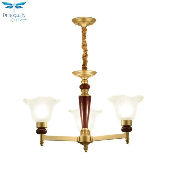 Frosted Glass Blossom Chandelier Light Rustic Style 3/6/8 Lights Living Room Suspension Pendant in Gold