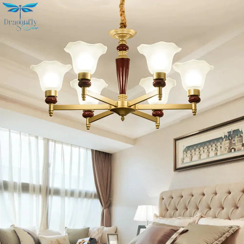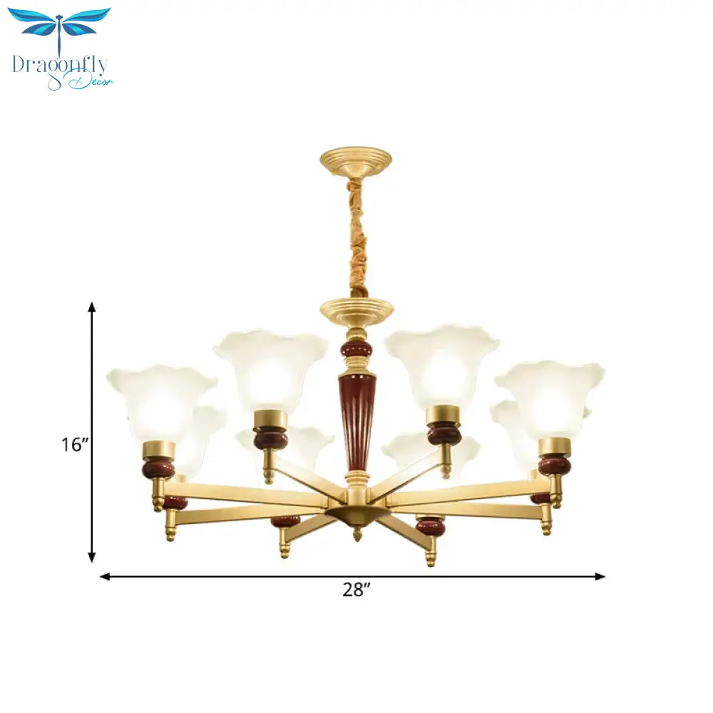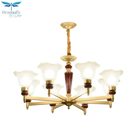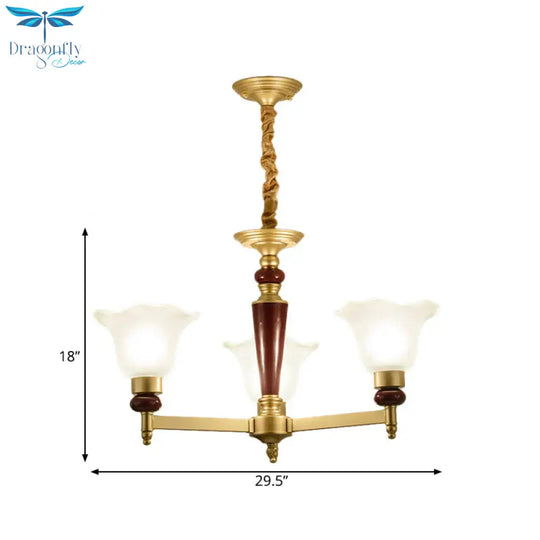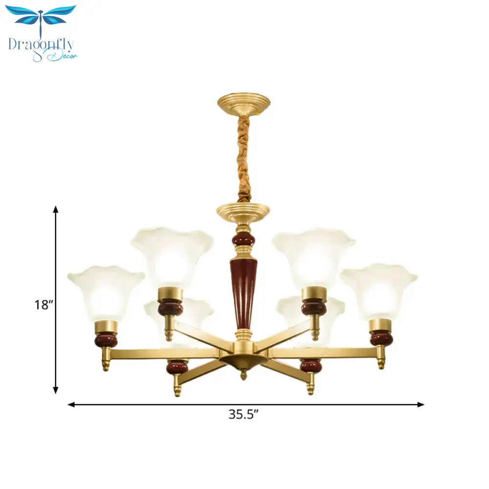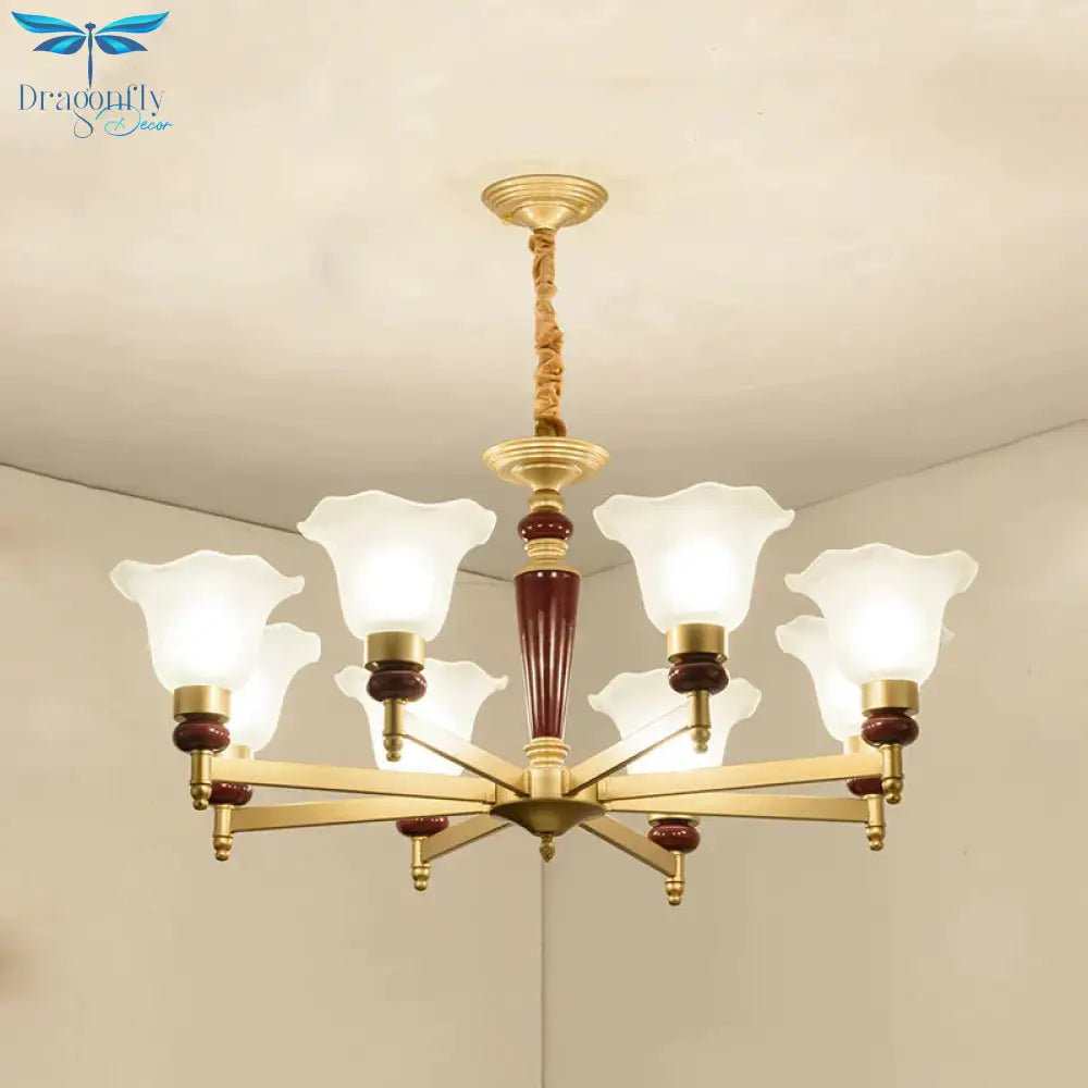 Frosted Glass Blossom Chandelier Light Rustic Style 3/6/8 Lights Living Room Suspension Pendant in Gold