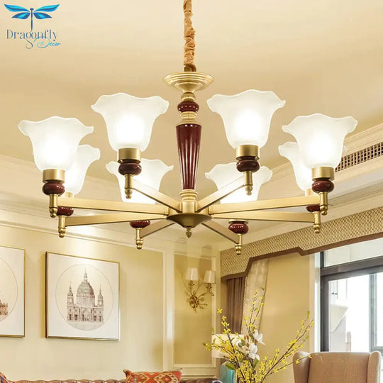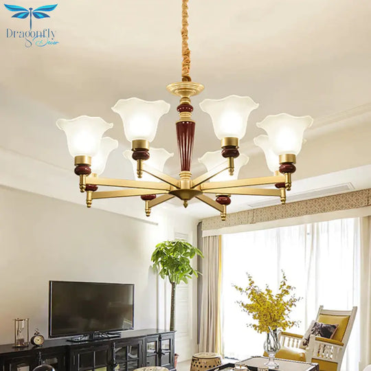 Frosted Glass Blossom Chandelier Light Rustic Style 3/6/8 Lights Livin