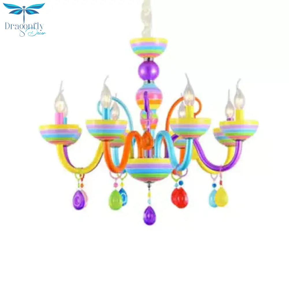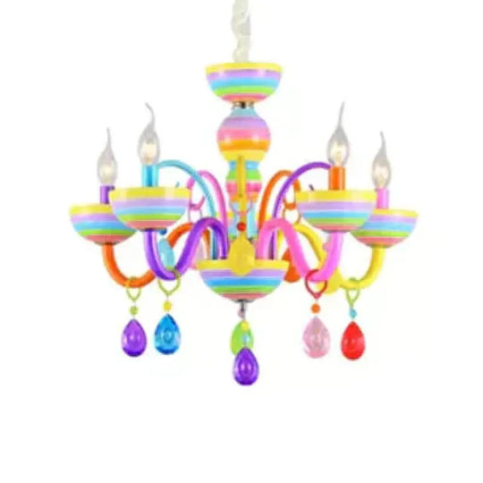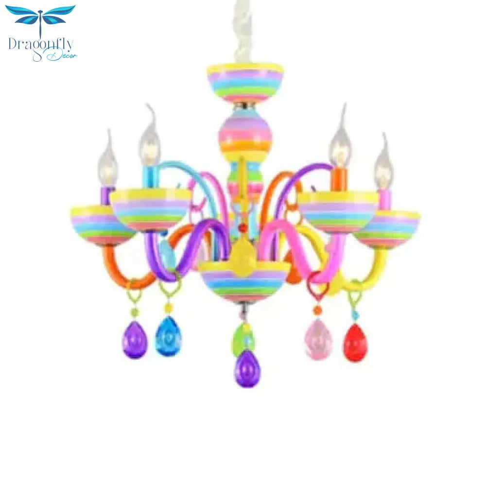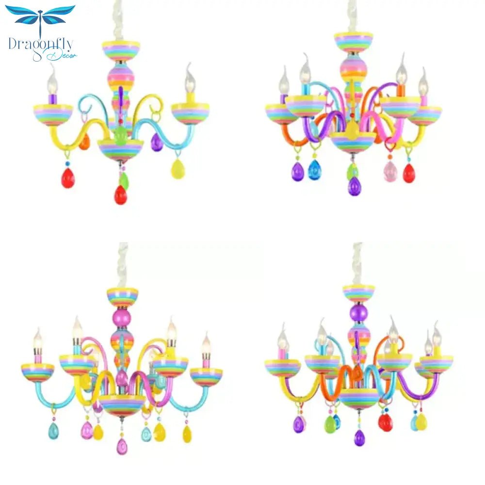 Glass Candle Pendant Light with Crystal Pretty Multi-Colored Chandelier for Kindergarten
