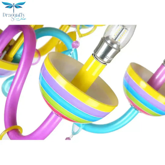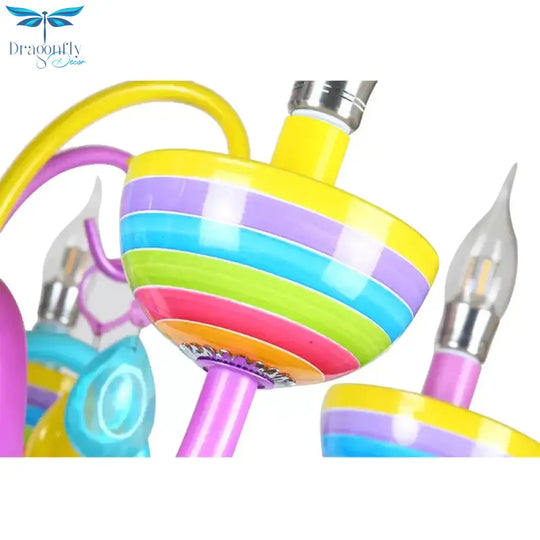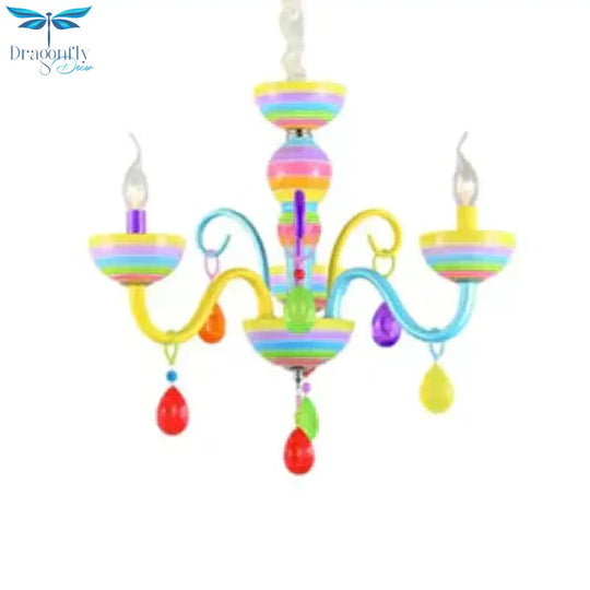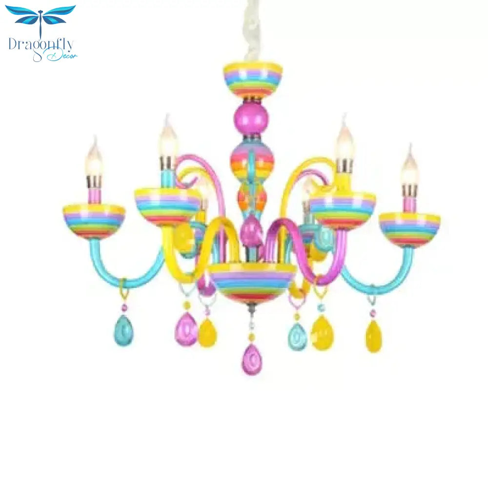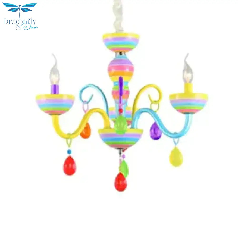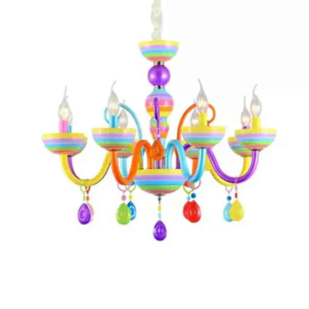 Glass Candle Pendant Light with Crystal Pretty Multi-Colored Chandelier for Kindergarten