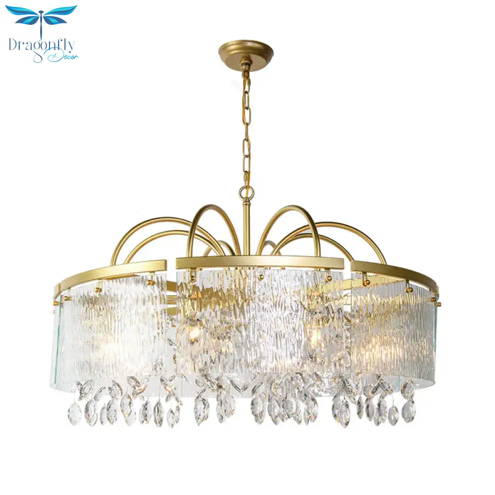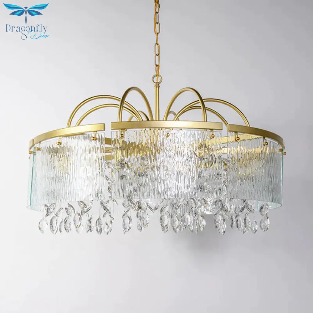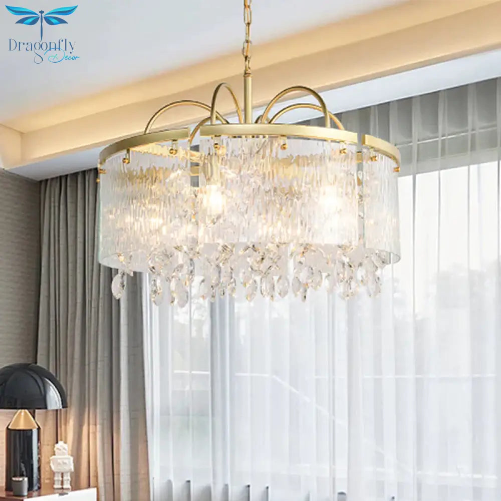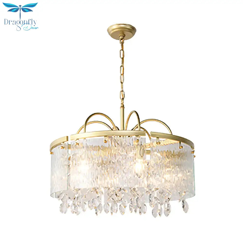Gold 4/6/8 Lights Pendant Chandelier Simple Crystal Round Suspension L