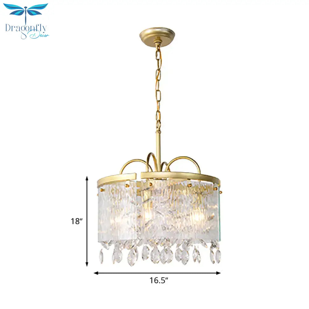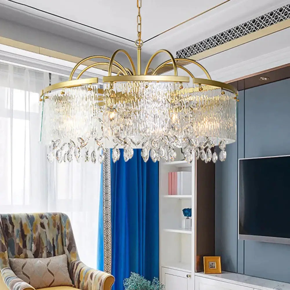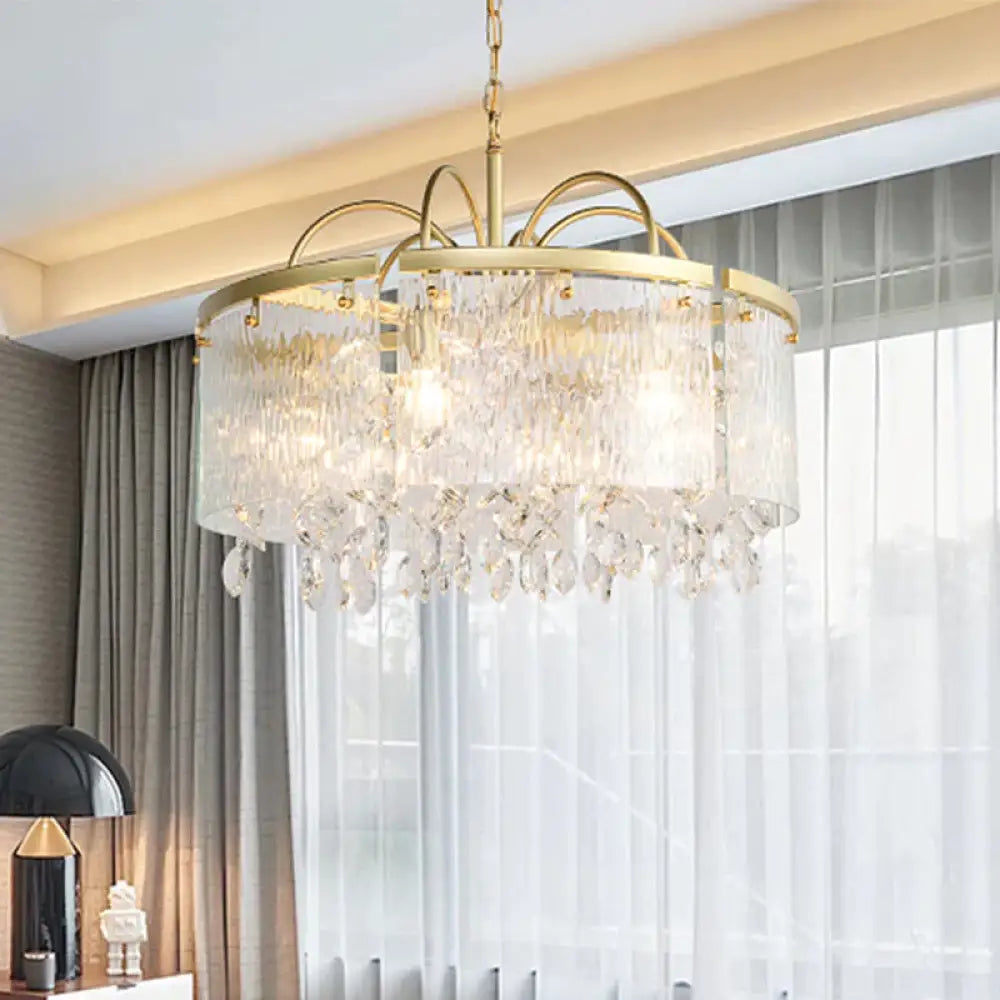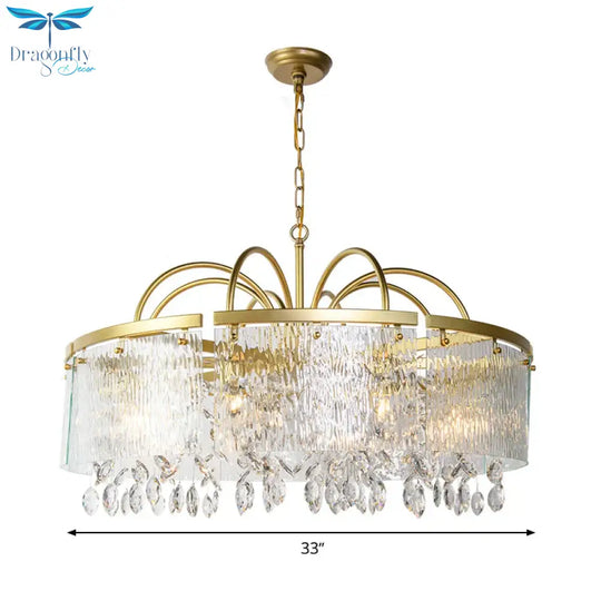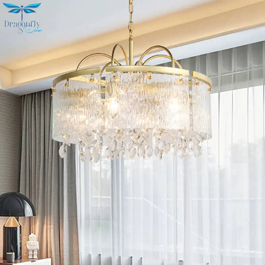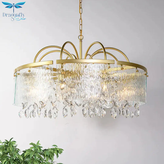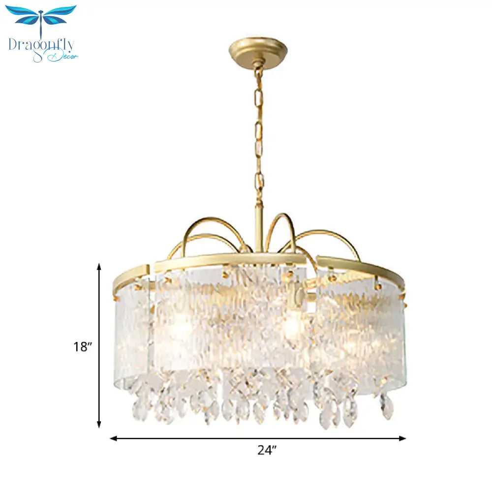 Gold 4/6/8 Lights Pendant Chandelier Simple Crystal Round Suspension L