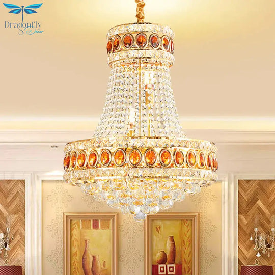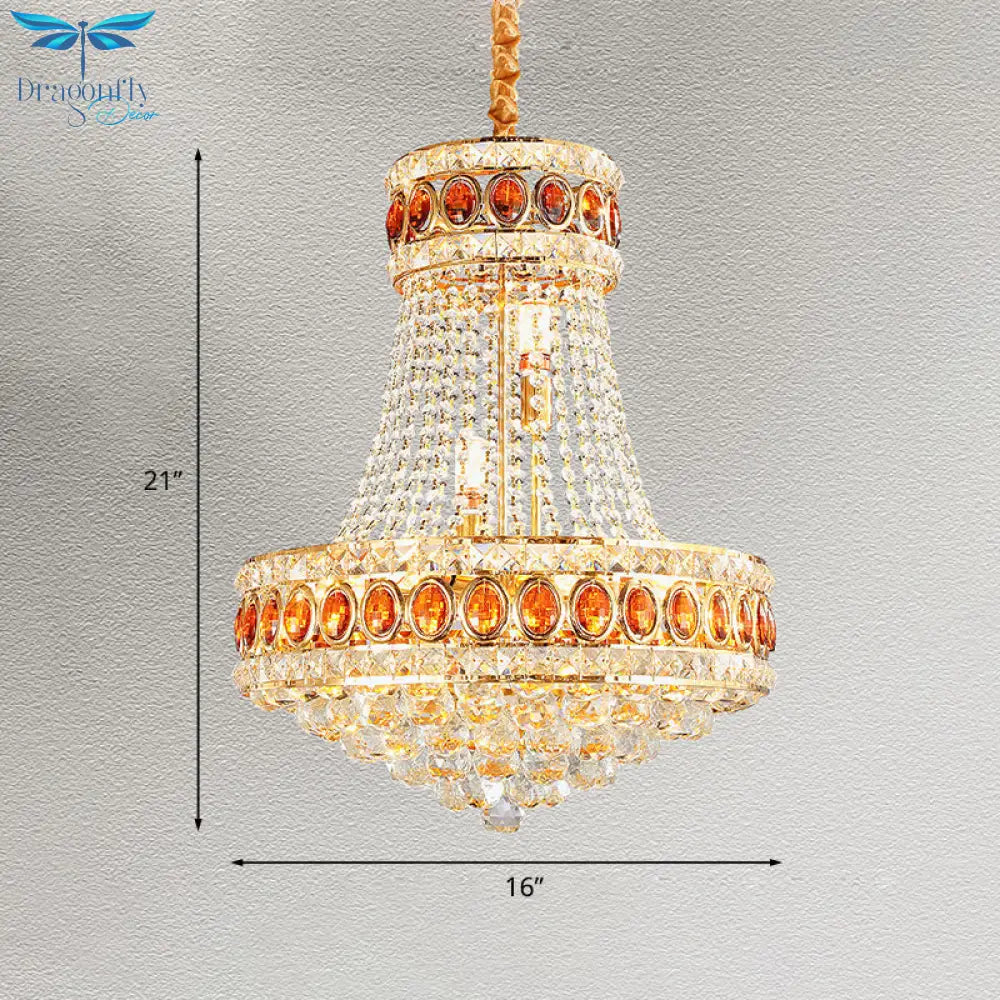 Gold Cone Pendant Chandelier Contemporary Crystal 5-Bulb Dining Hall S