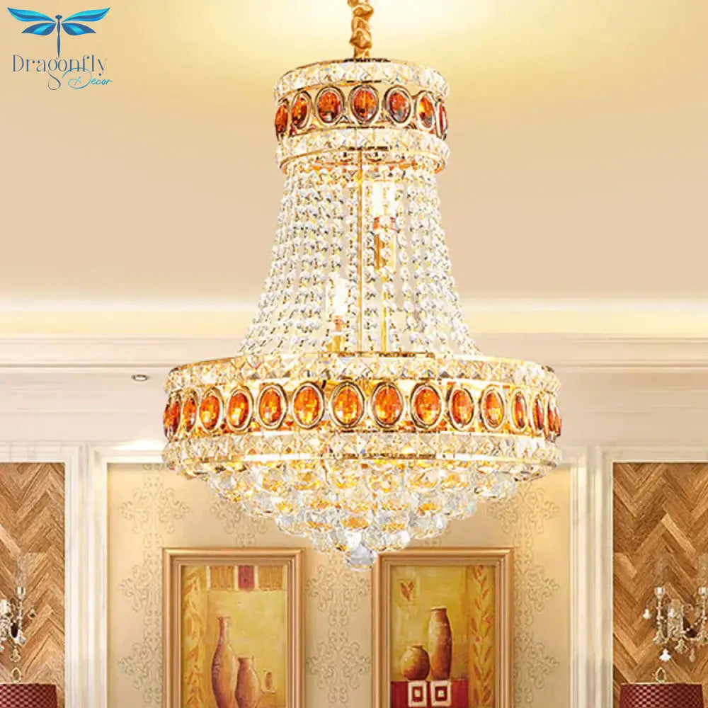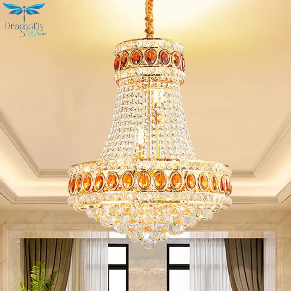 Gold Cone Pendant Chandelier Contemporary Crystal 5-Bulb Dining Hall Suspension Lamp