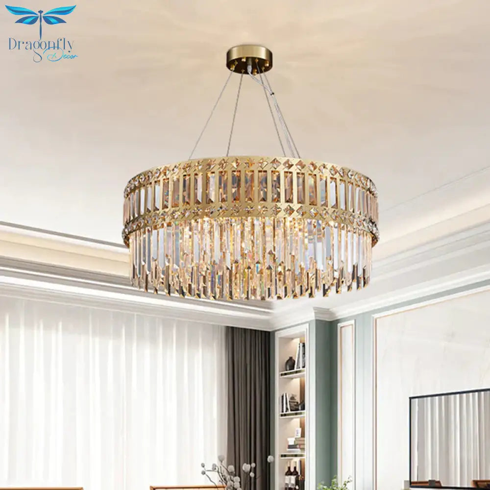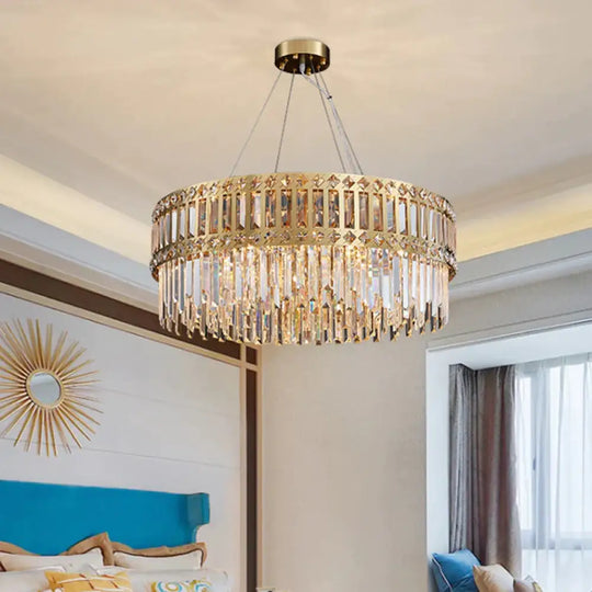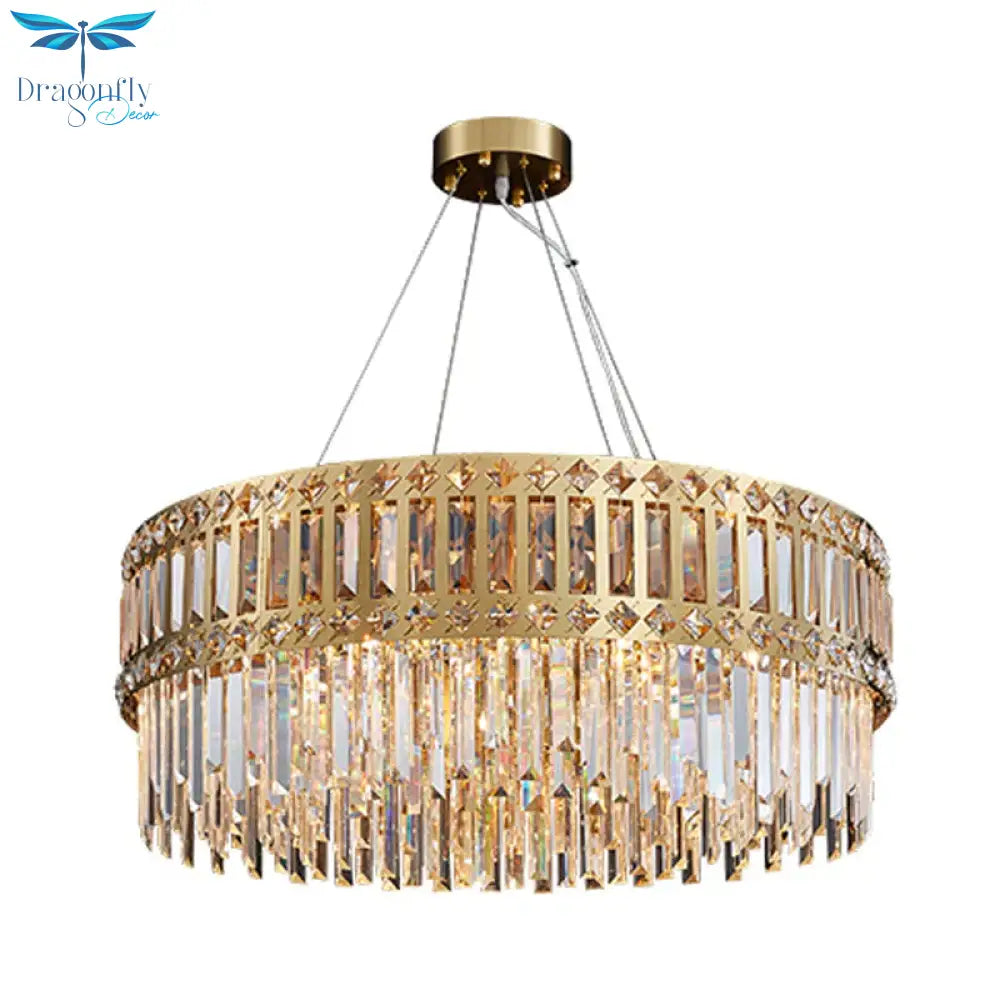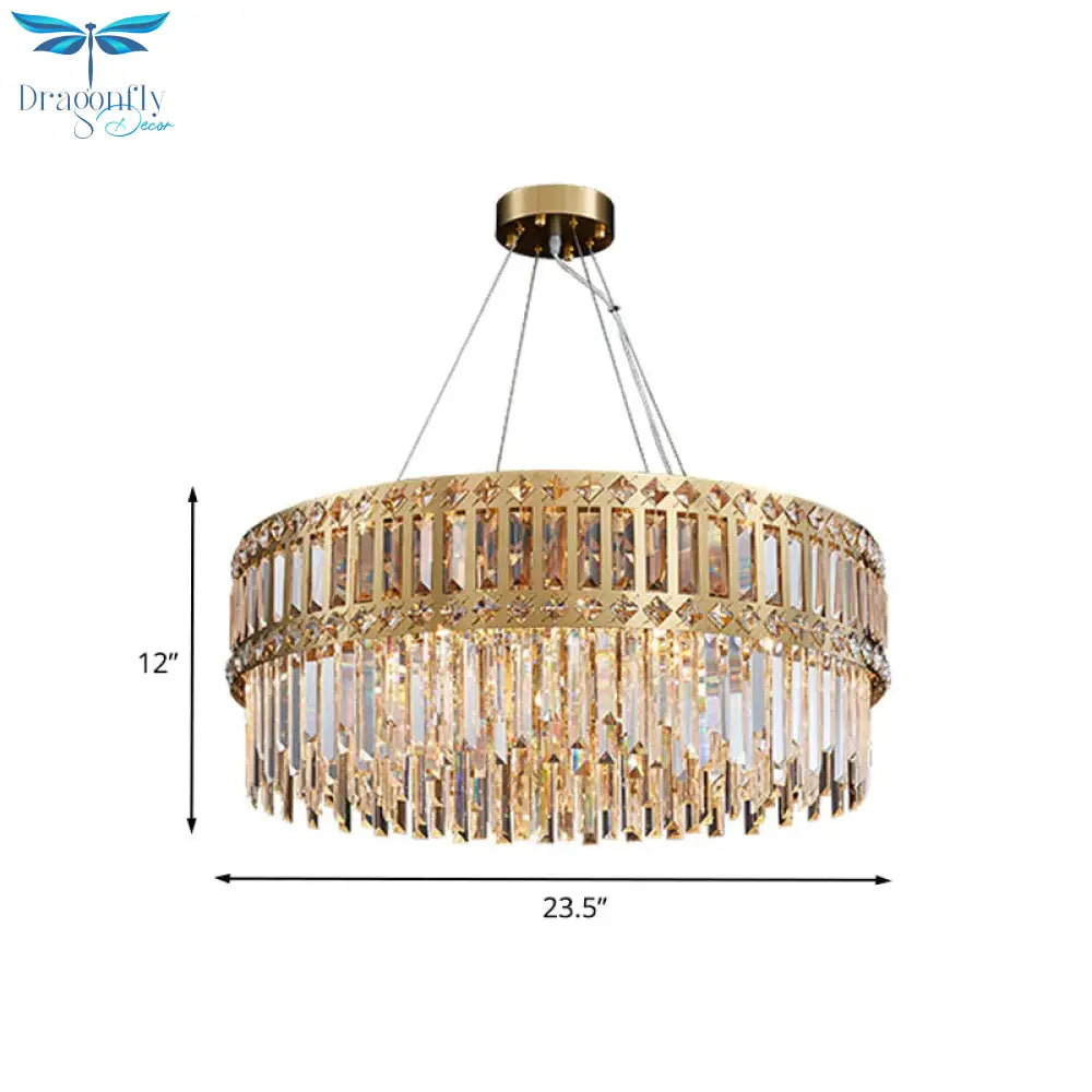 Gold Drum Hanging Chandelier Modern Strip Crystal 10 Lights Living Roo