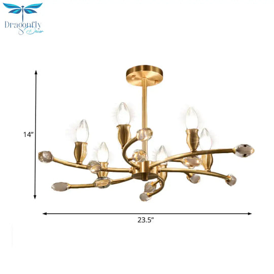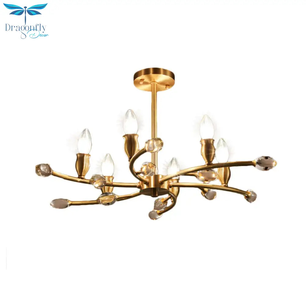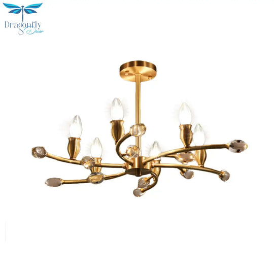 Gold Exposed Bulb Pendant Lighting Rustic Metal 6 Lights Bedroom Room Chandelier Hanging Light Fixture