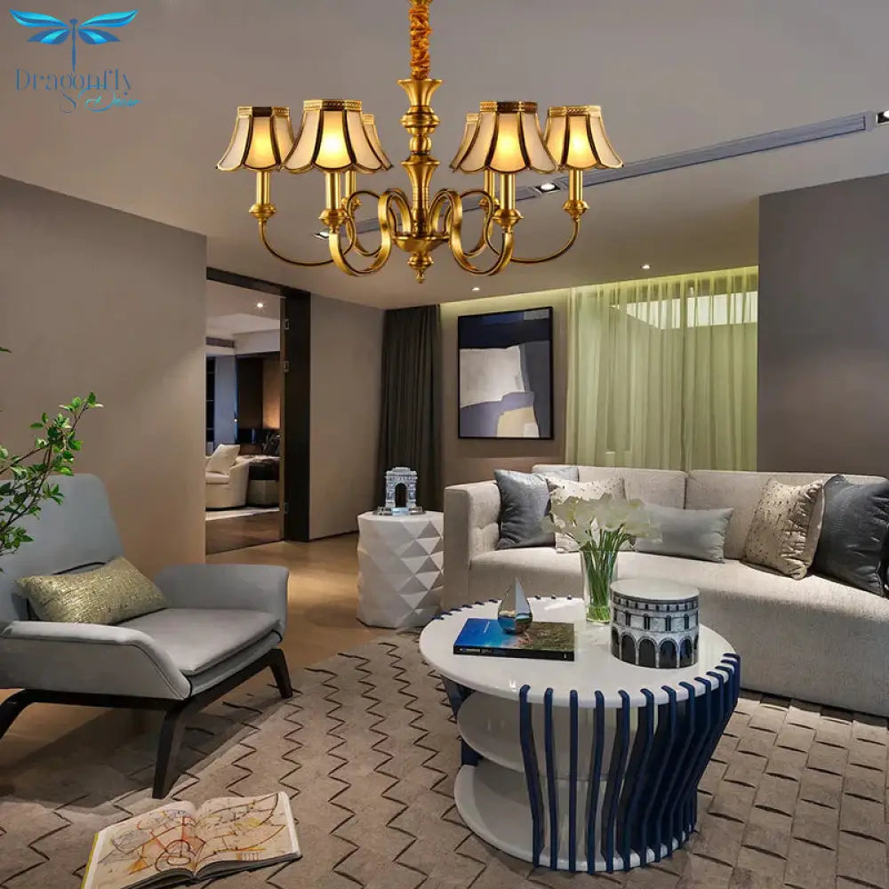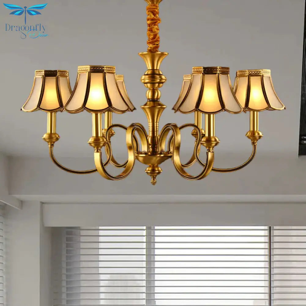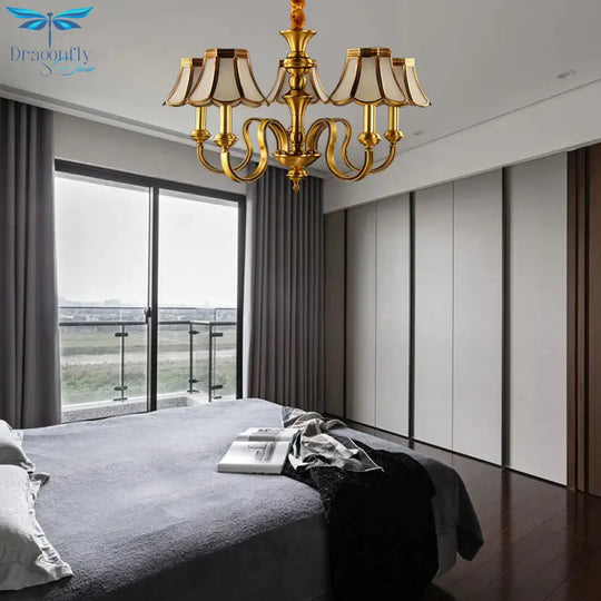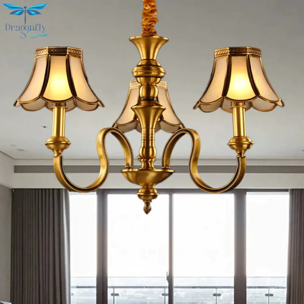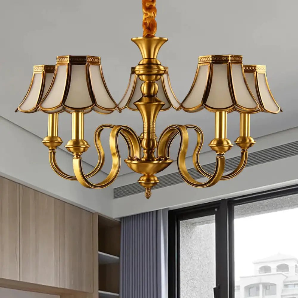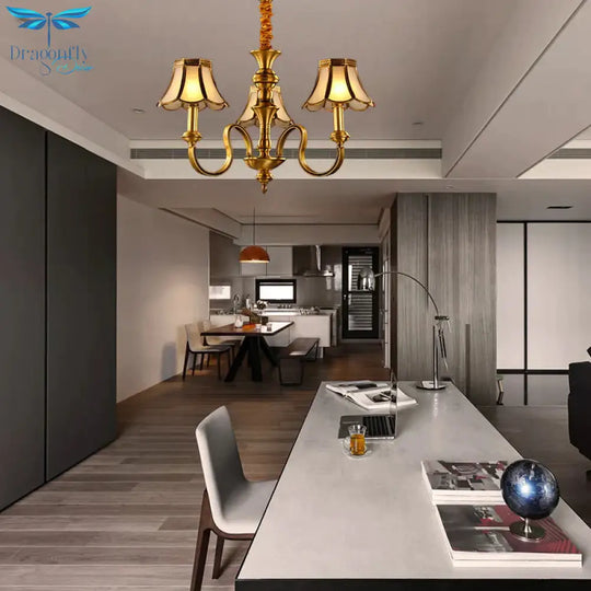 Gold Finish Radial Ceiling Suspension Lamp Colonialism Metal 3/5/6 Heads Living Room Pendant Chandelier
