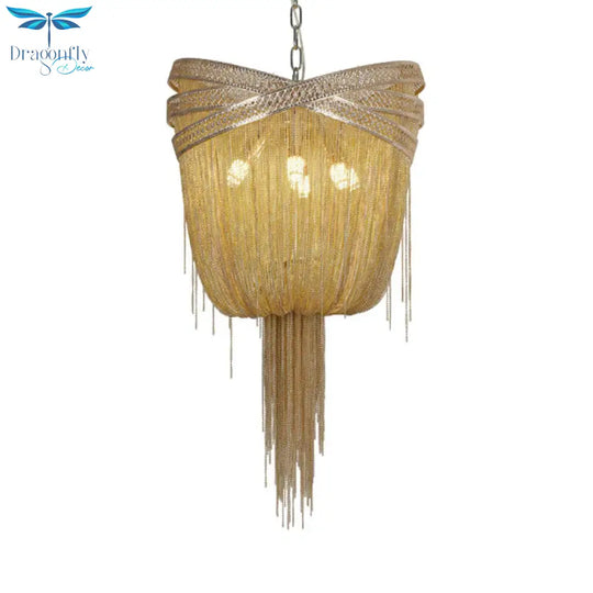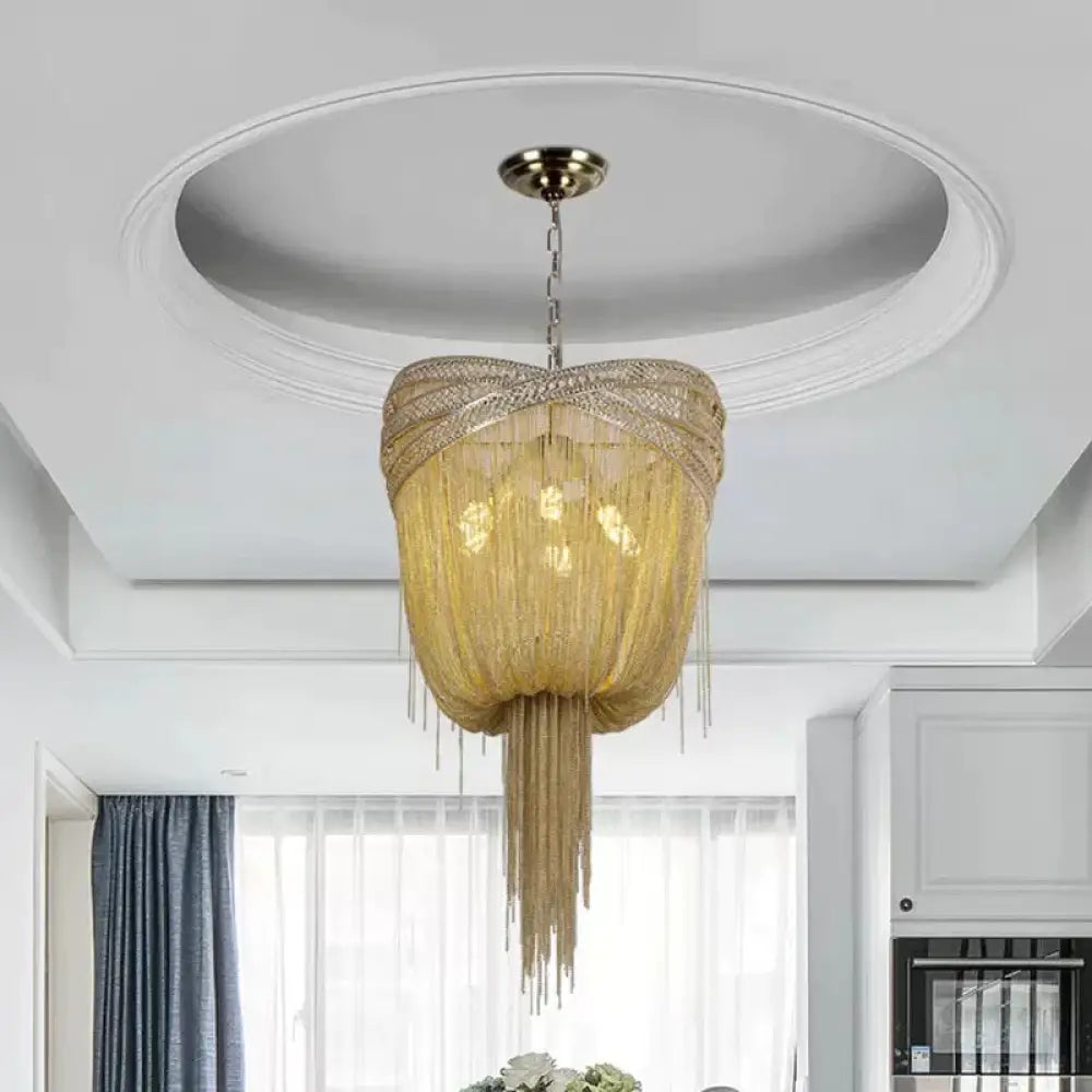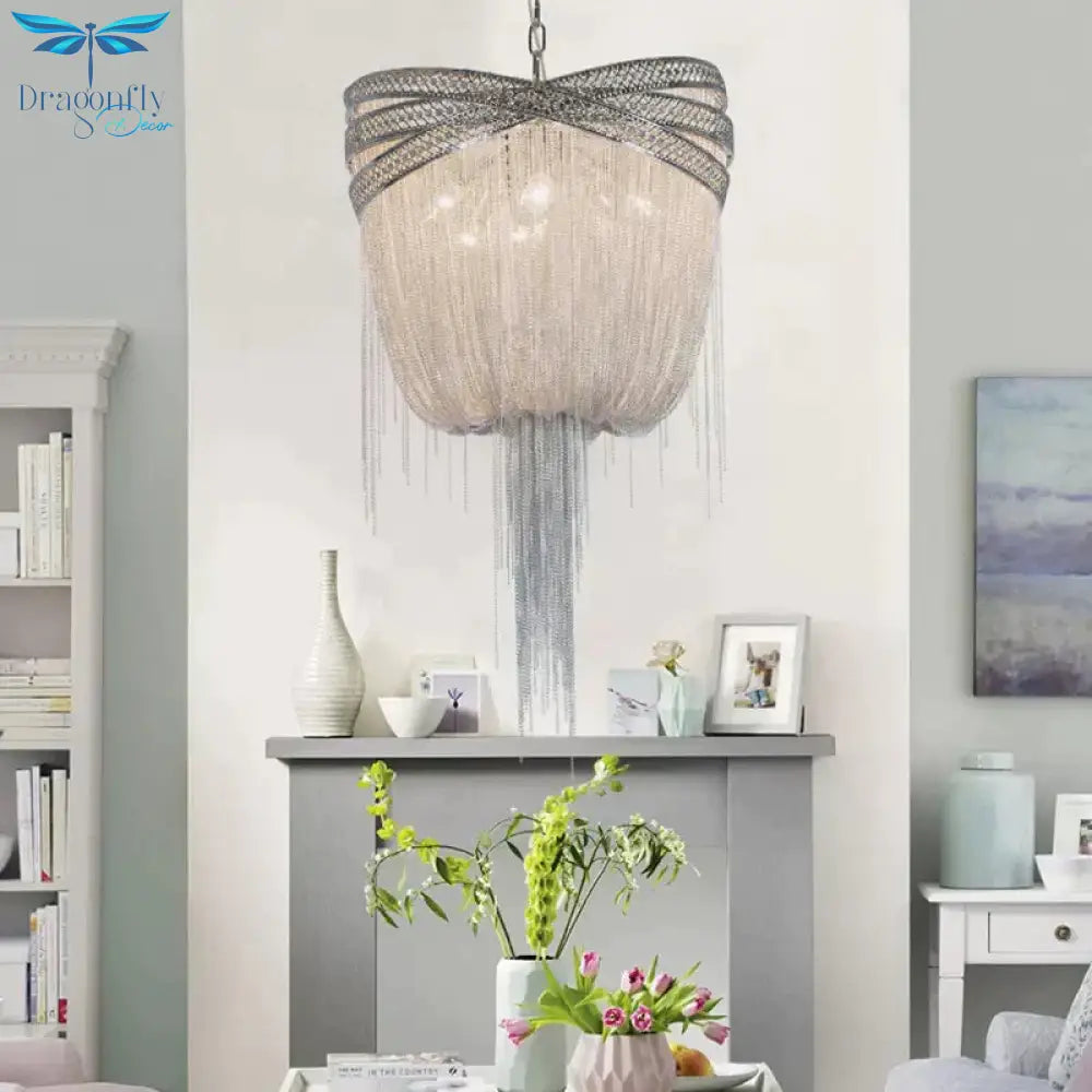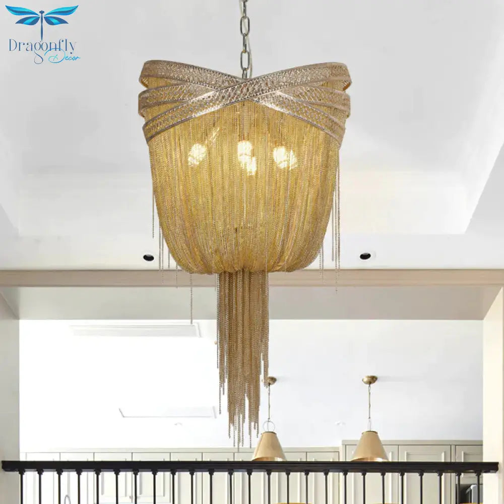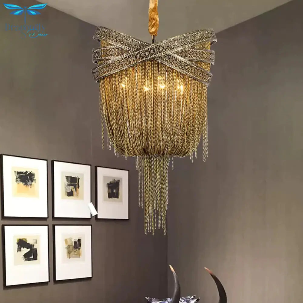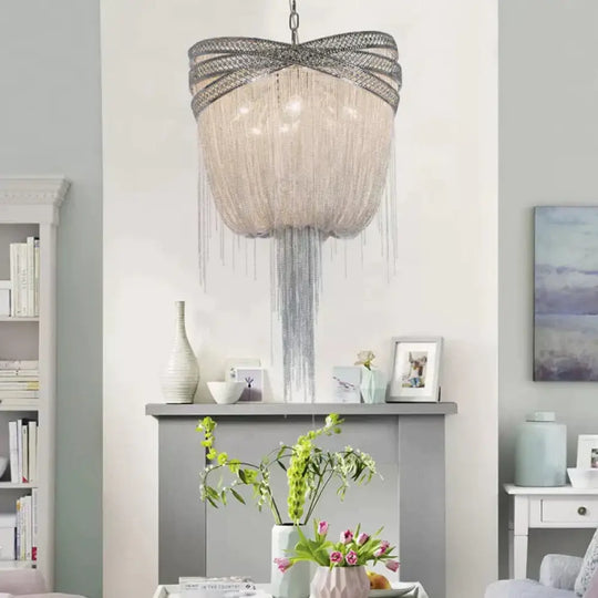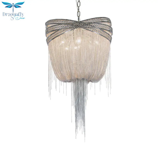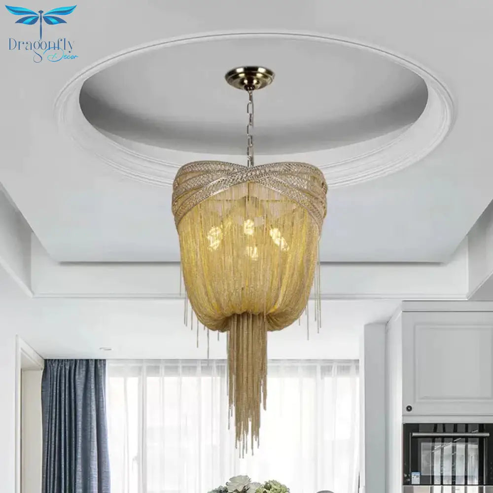 Gold/Silver 4/6/8 Lights Chandelier Lighting Rustic Metal Draped Beade