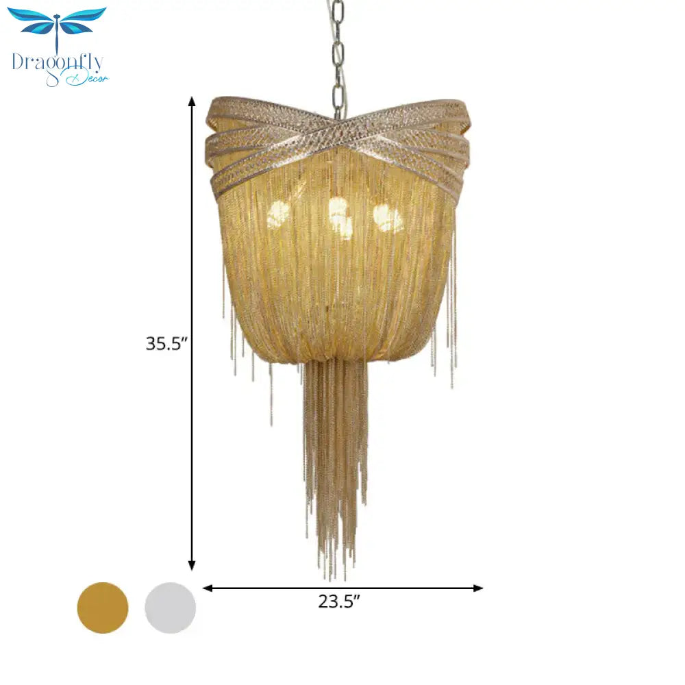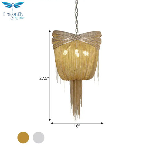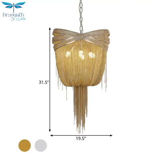 Gold/Silver 4/6/8 Lights Chandelier Lighting Rustic Metal Draped Beaded Hanging Light Fixture, 16"/19.5"/23.5" Wide