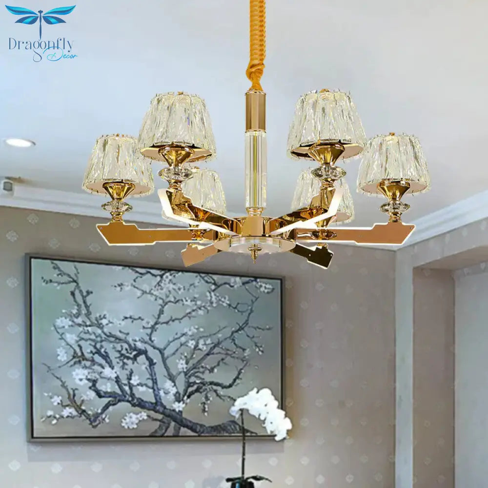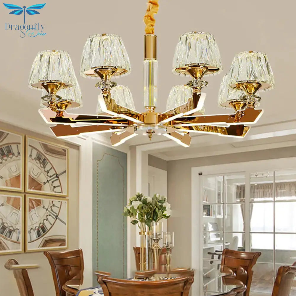 Gold Sputnik Hanging Ceiling Light Postmodern Crystal Block 6/8/12 Heads Living Room Pendant Chandelier