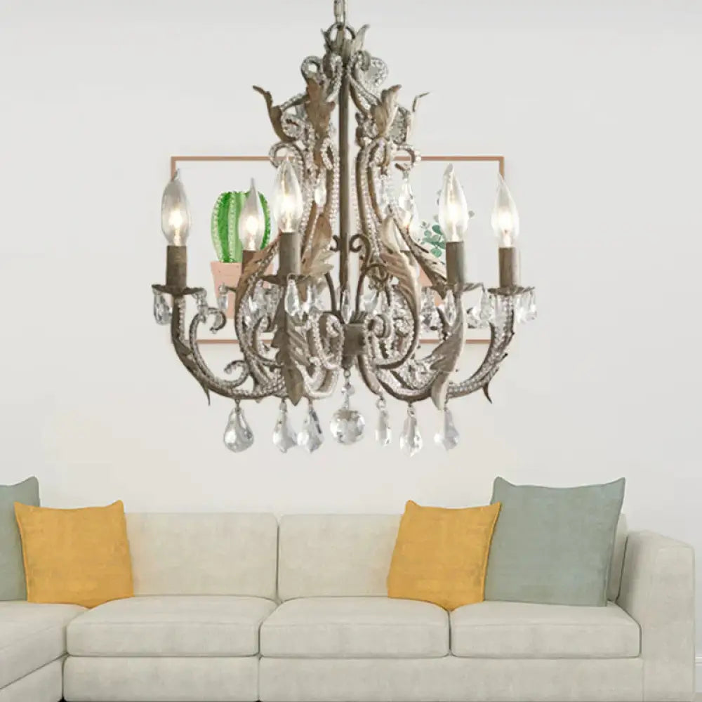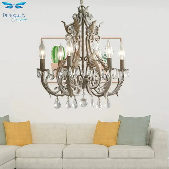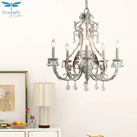 Grey/White Spur Chandelier Modern 5/6 Heads Crystal Ceiling Pendant Light for Living Room
