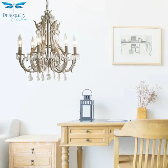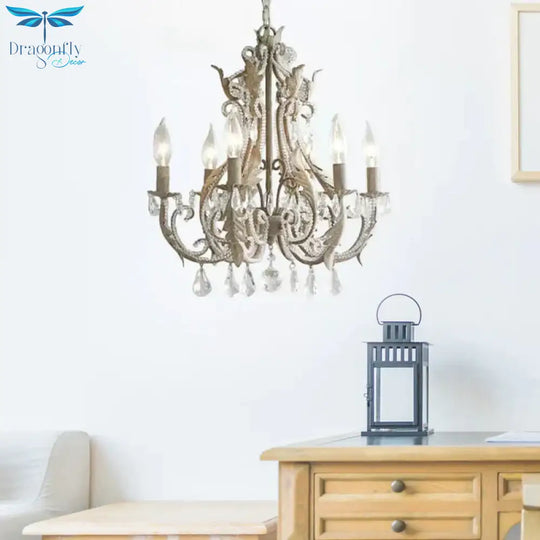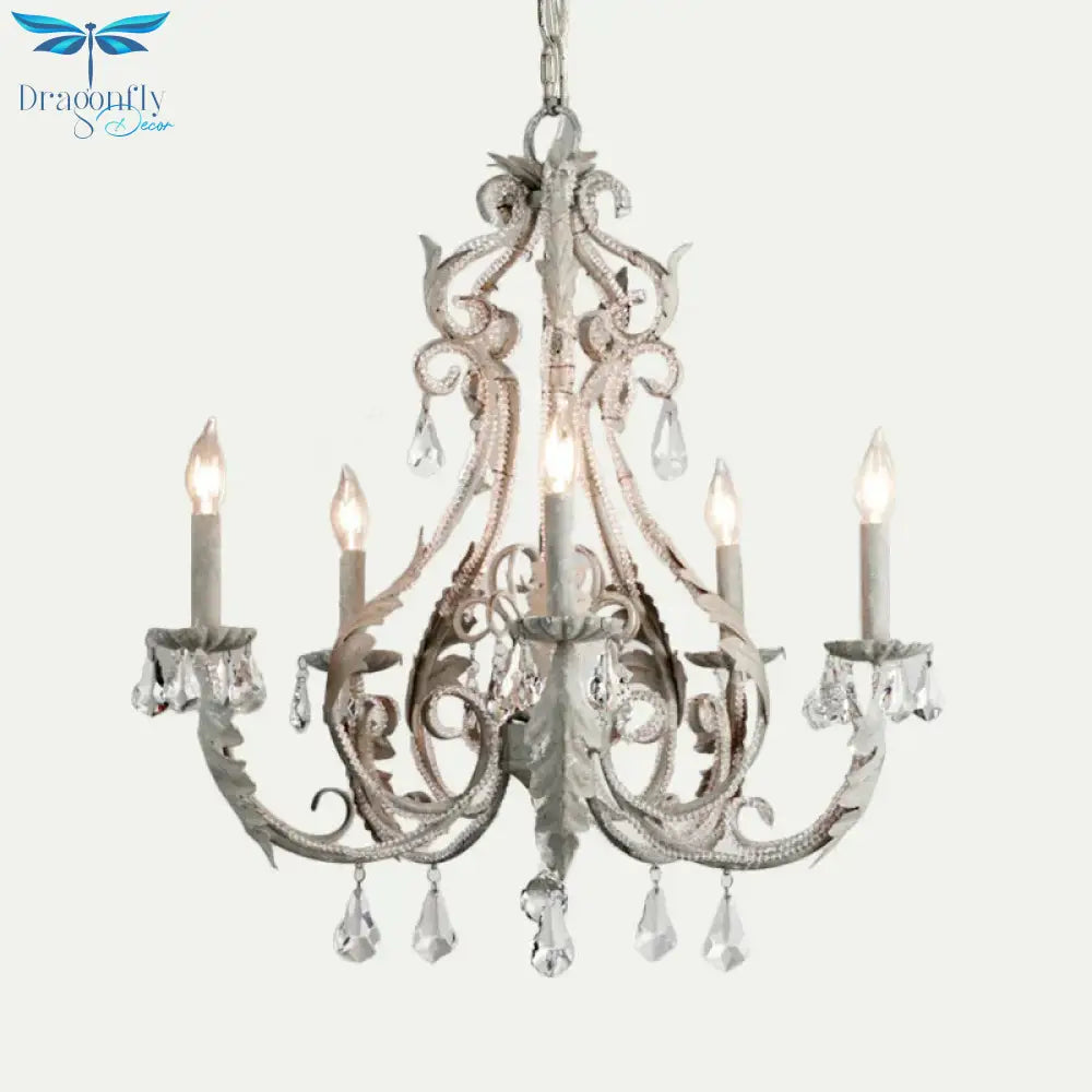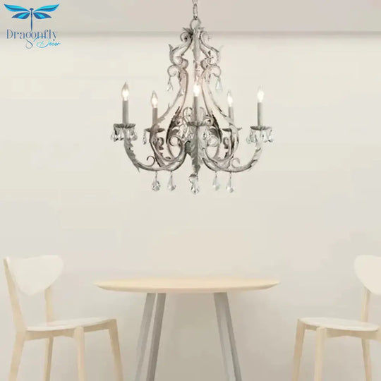 Grey/White Spur Chandelier Modern 5/6 Heads Crystal Ceiling Pendant Li