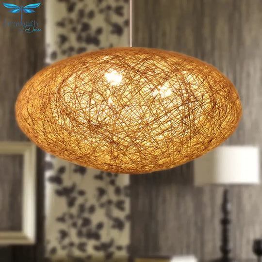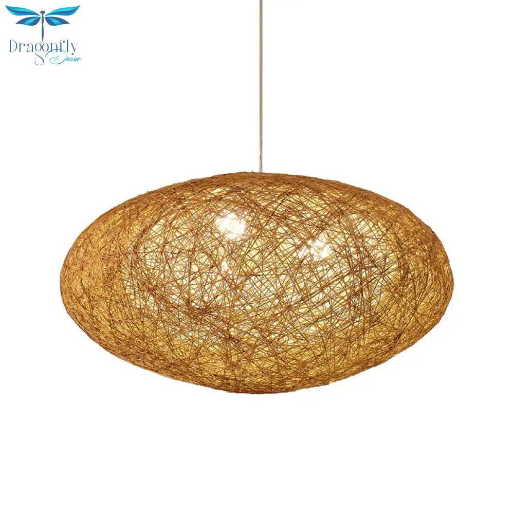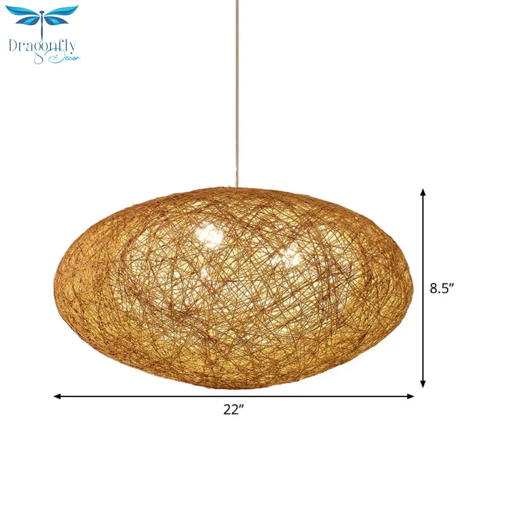 Handcrafted Pendant Chandelier Japanese Bamboo 3 Heads Suspended Lighting Fixture in Flaxen