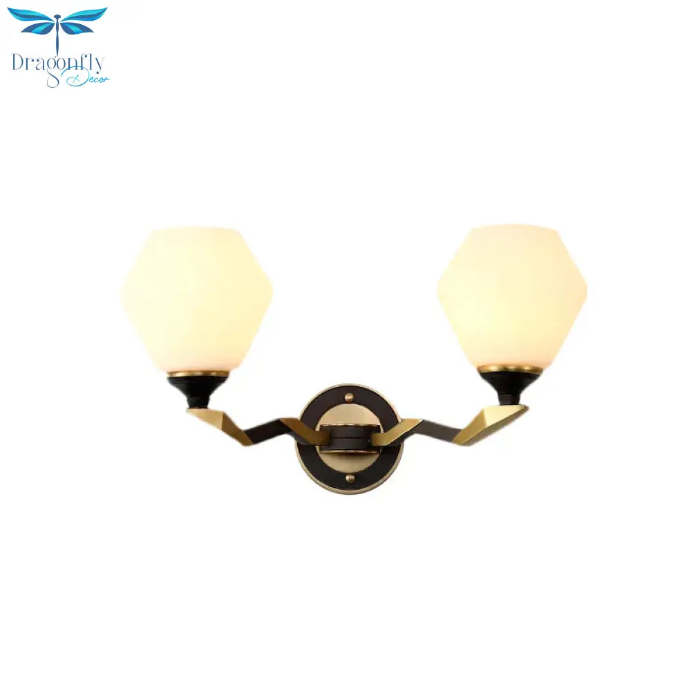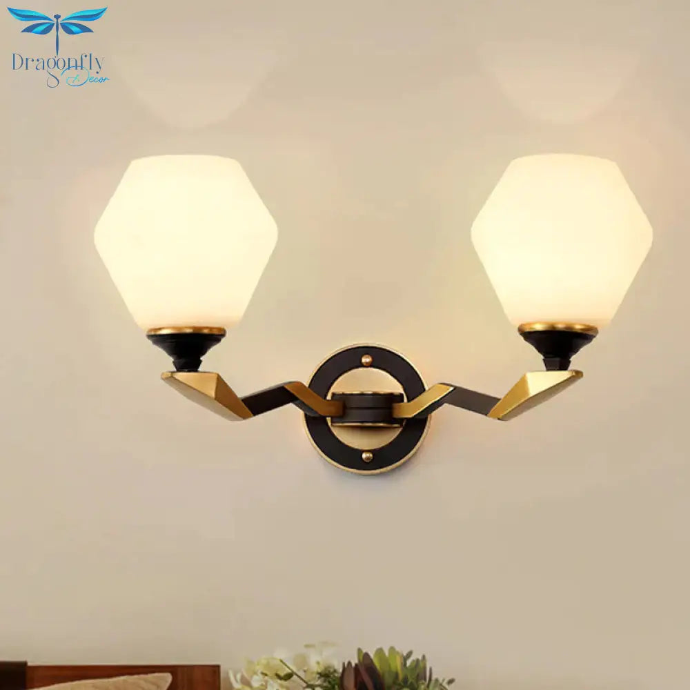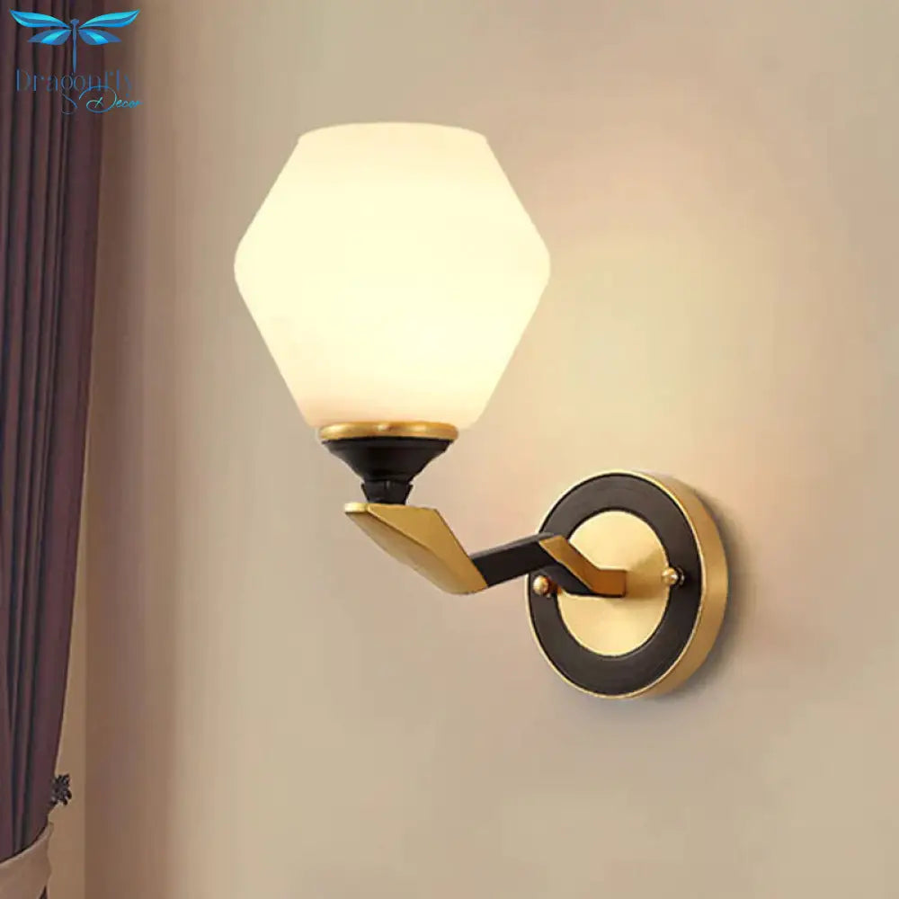 Hexagon Wall Light Black and Gold Frosted Glass Wall Lighting Fixture