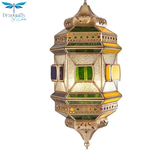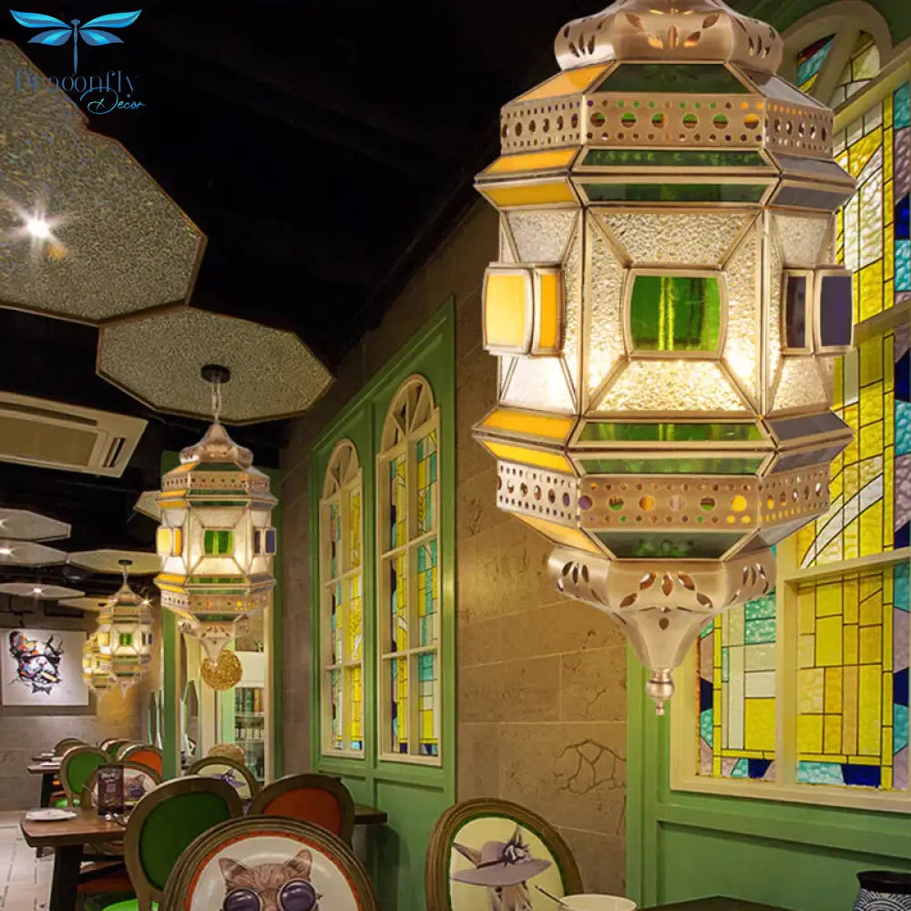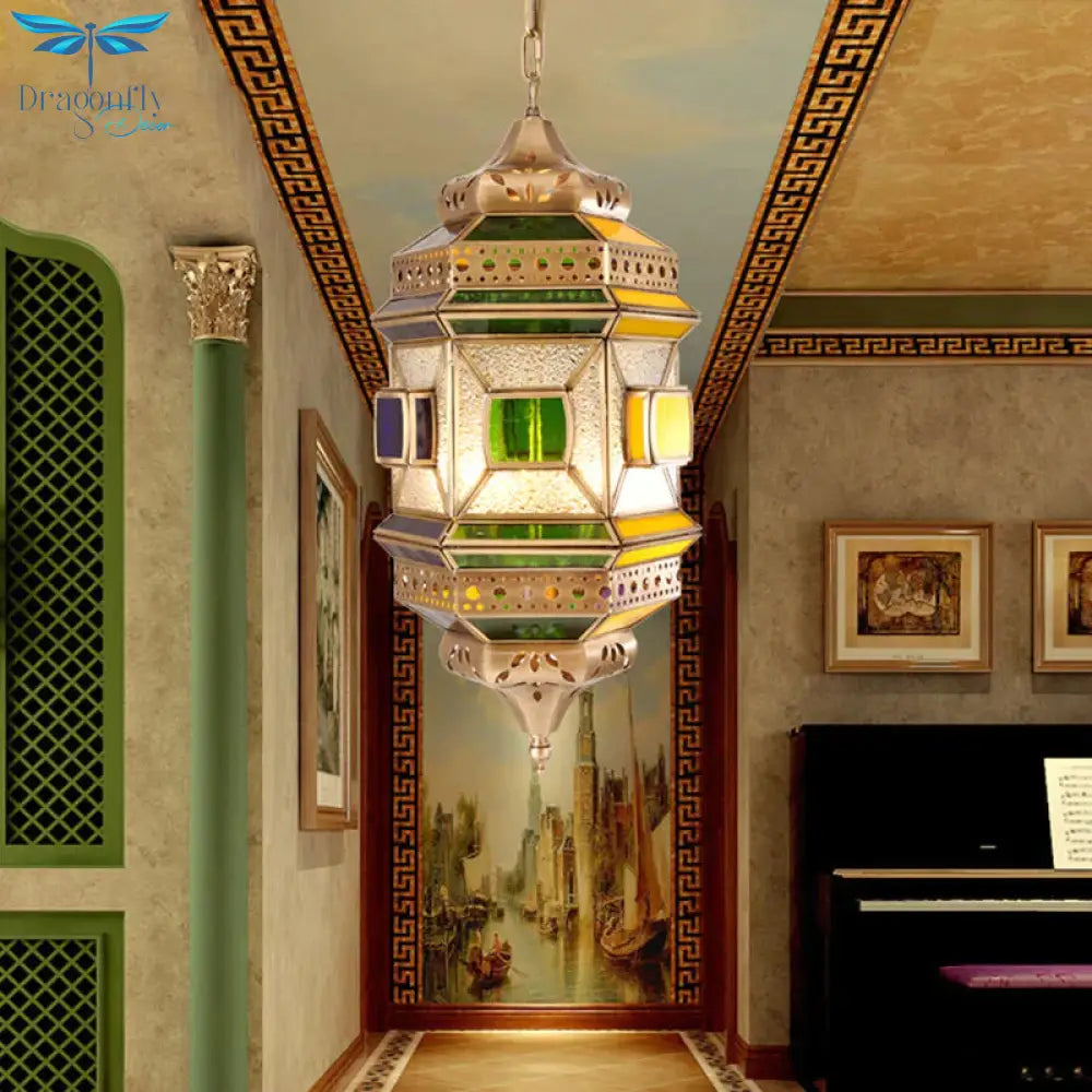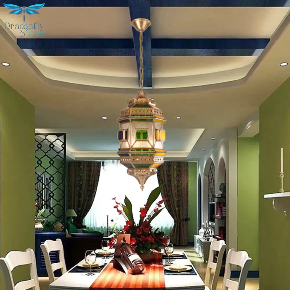Hexagonal Corridor Pendant Chandelier Arab Metal 4 Lights Brass Finish Ceiling Suspension Lamp
