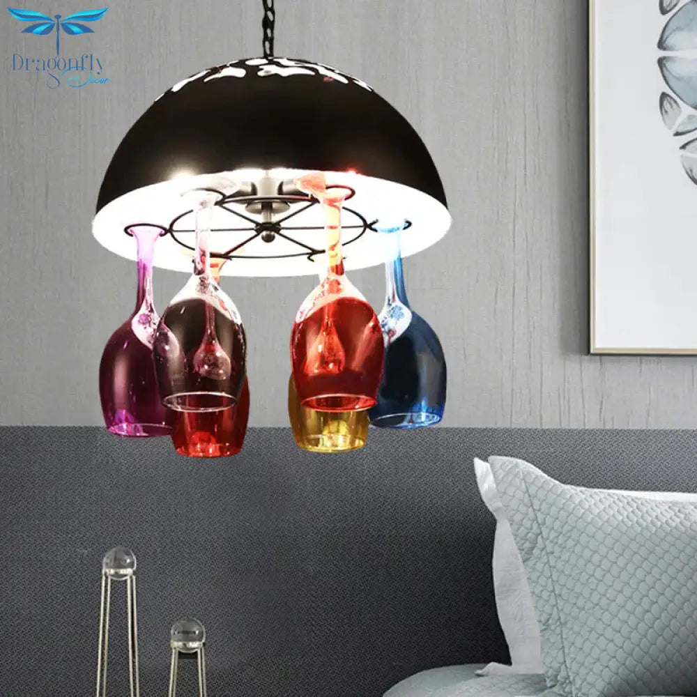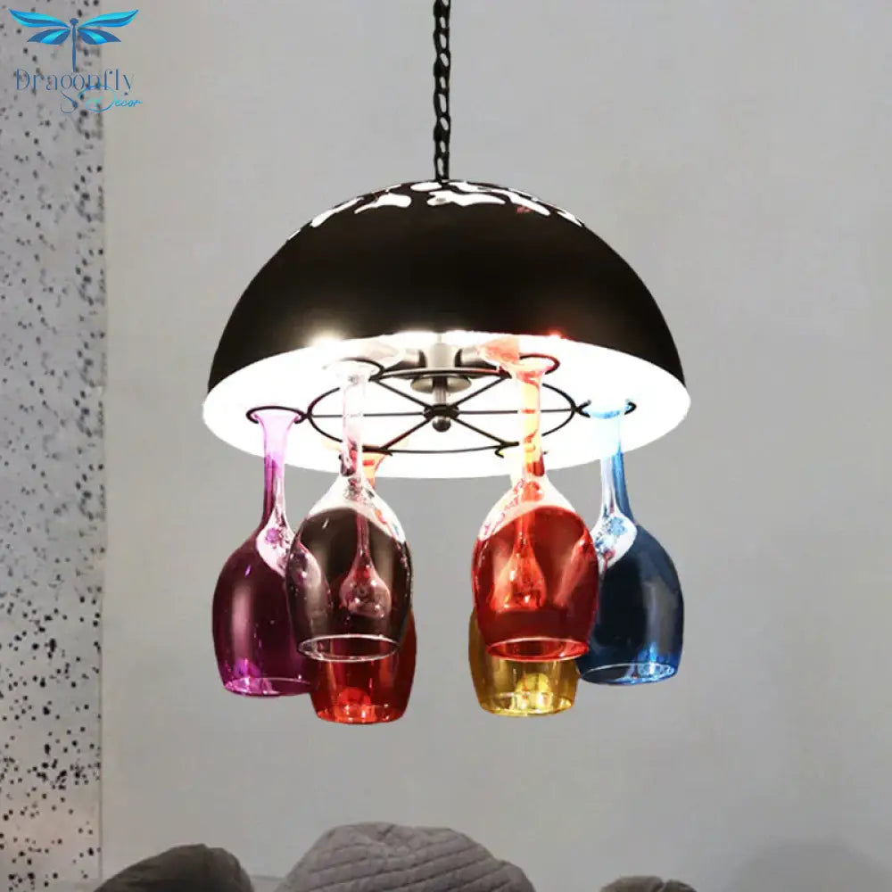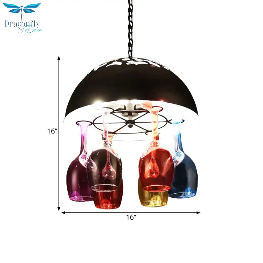 Industrial Multi-Color 6-light Chandeliers Domed Shape Goblet Glass Pendant Lights for Bar
