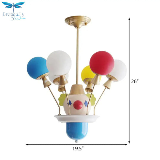 Kid Bedroom Clown Chandelier with Balloon Glass Resin Modern Multi-Col