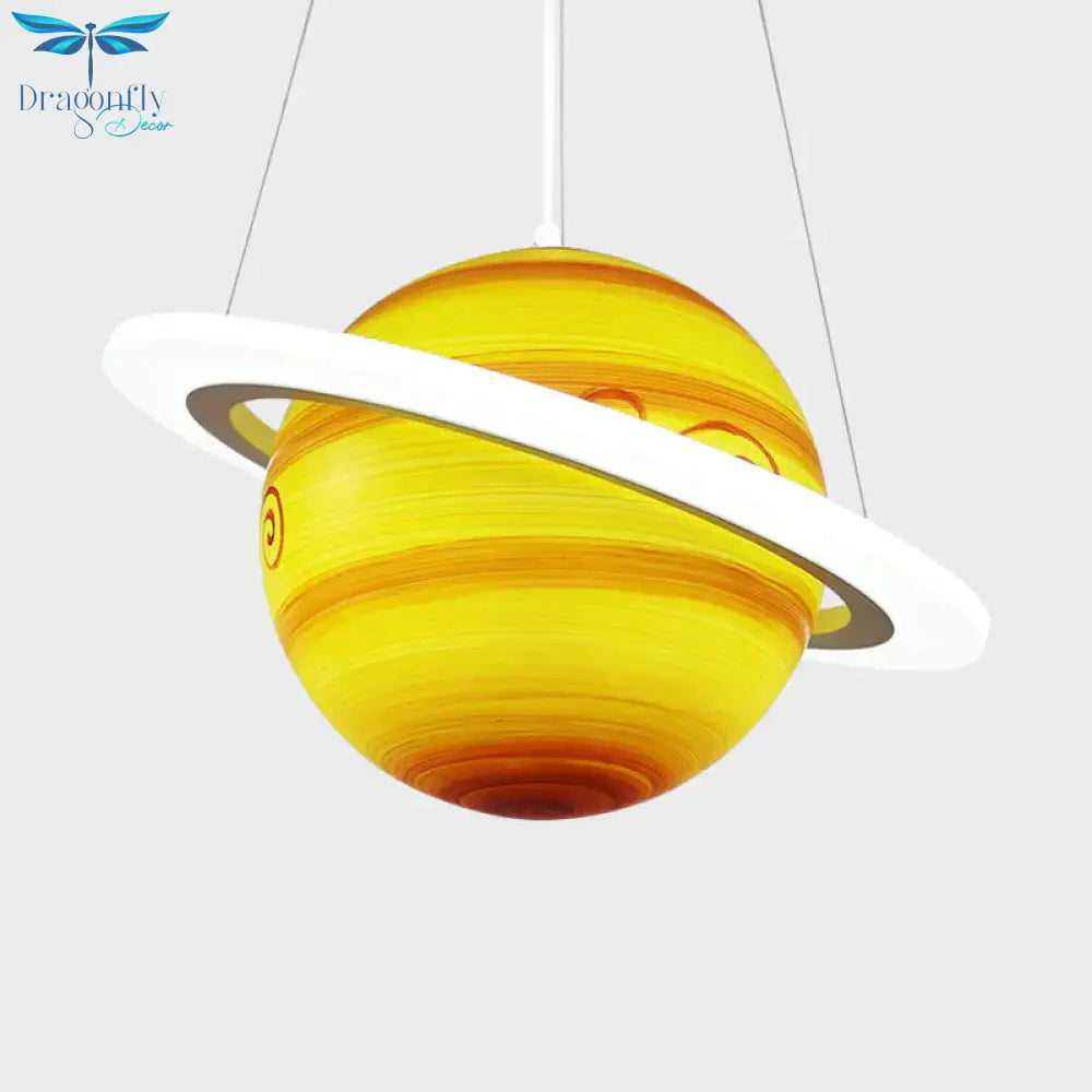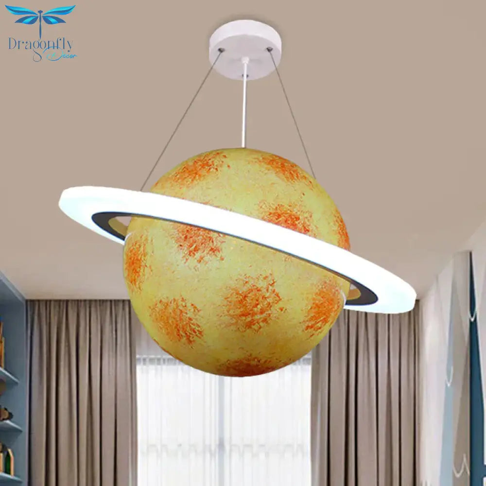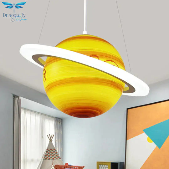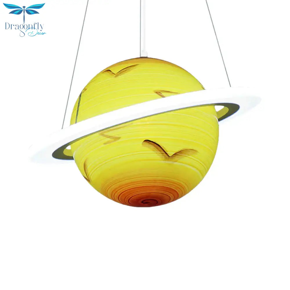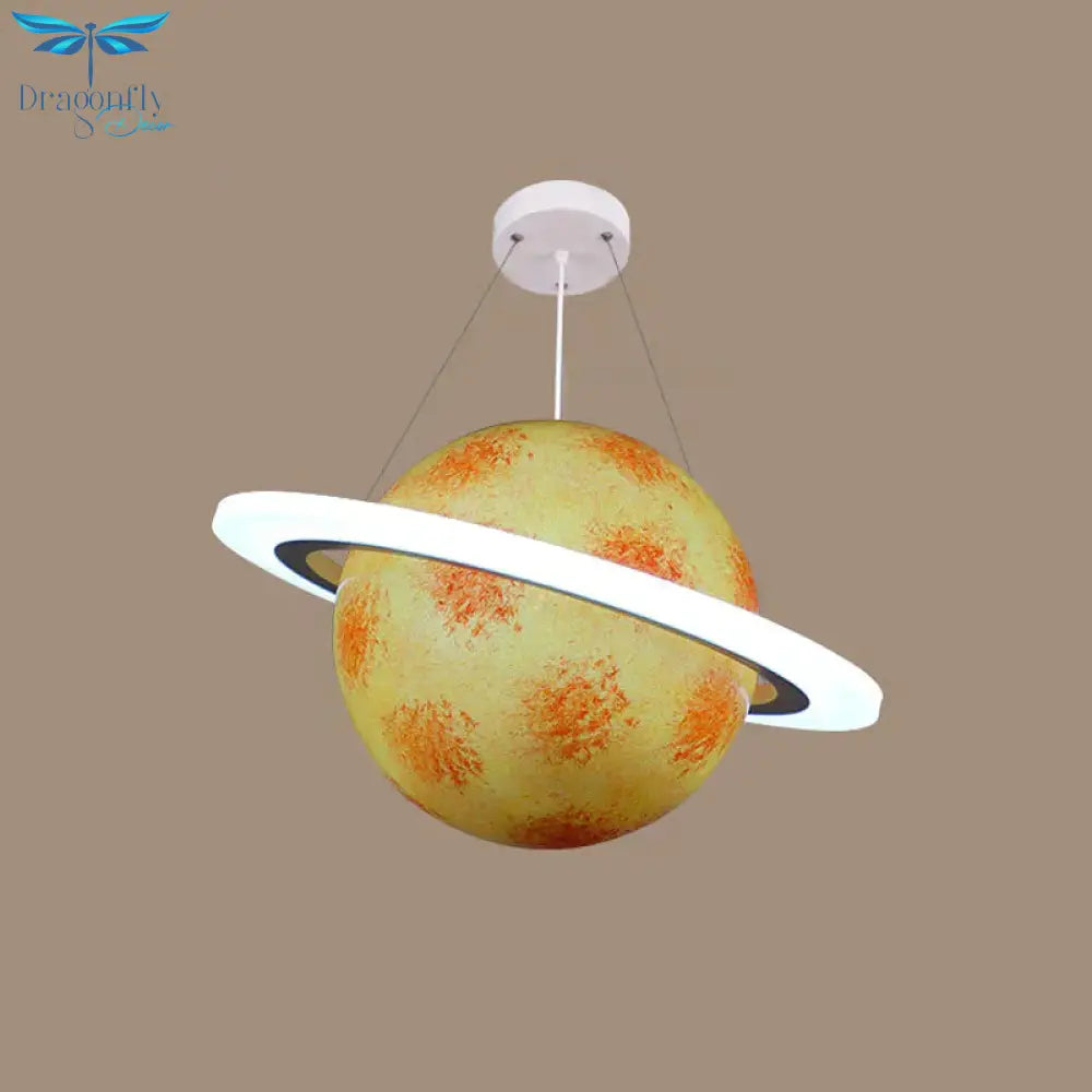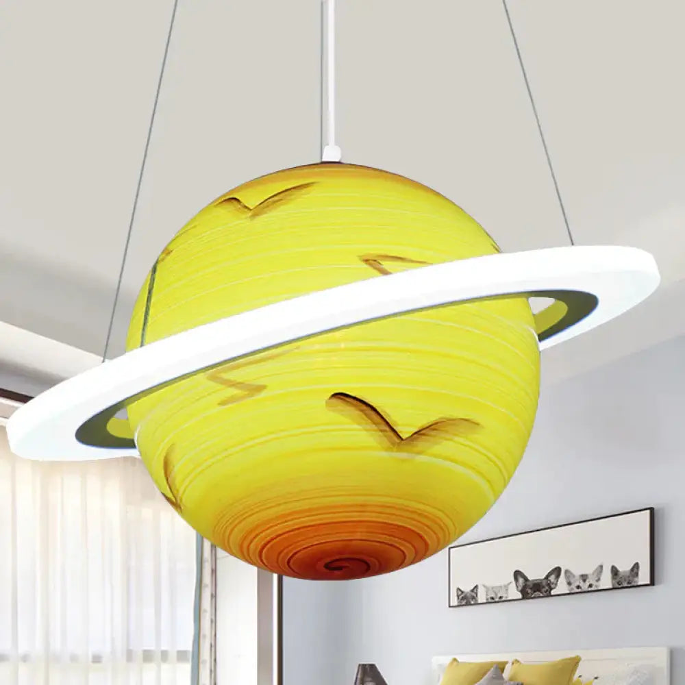 Kids 1 Bulb Suspension Light Yellow-Brown Jupiter/Blue Earth/Orange Sun Globe Pendant Chandelier with Acrylic Shade