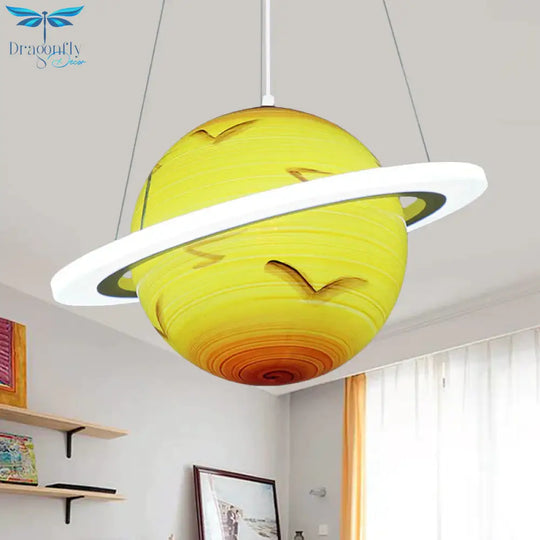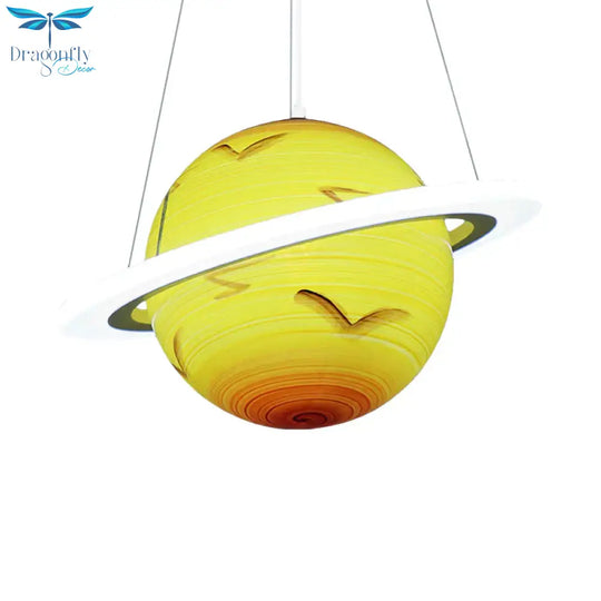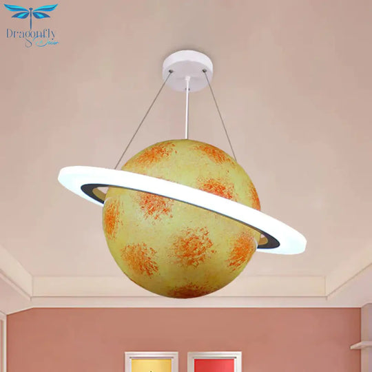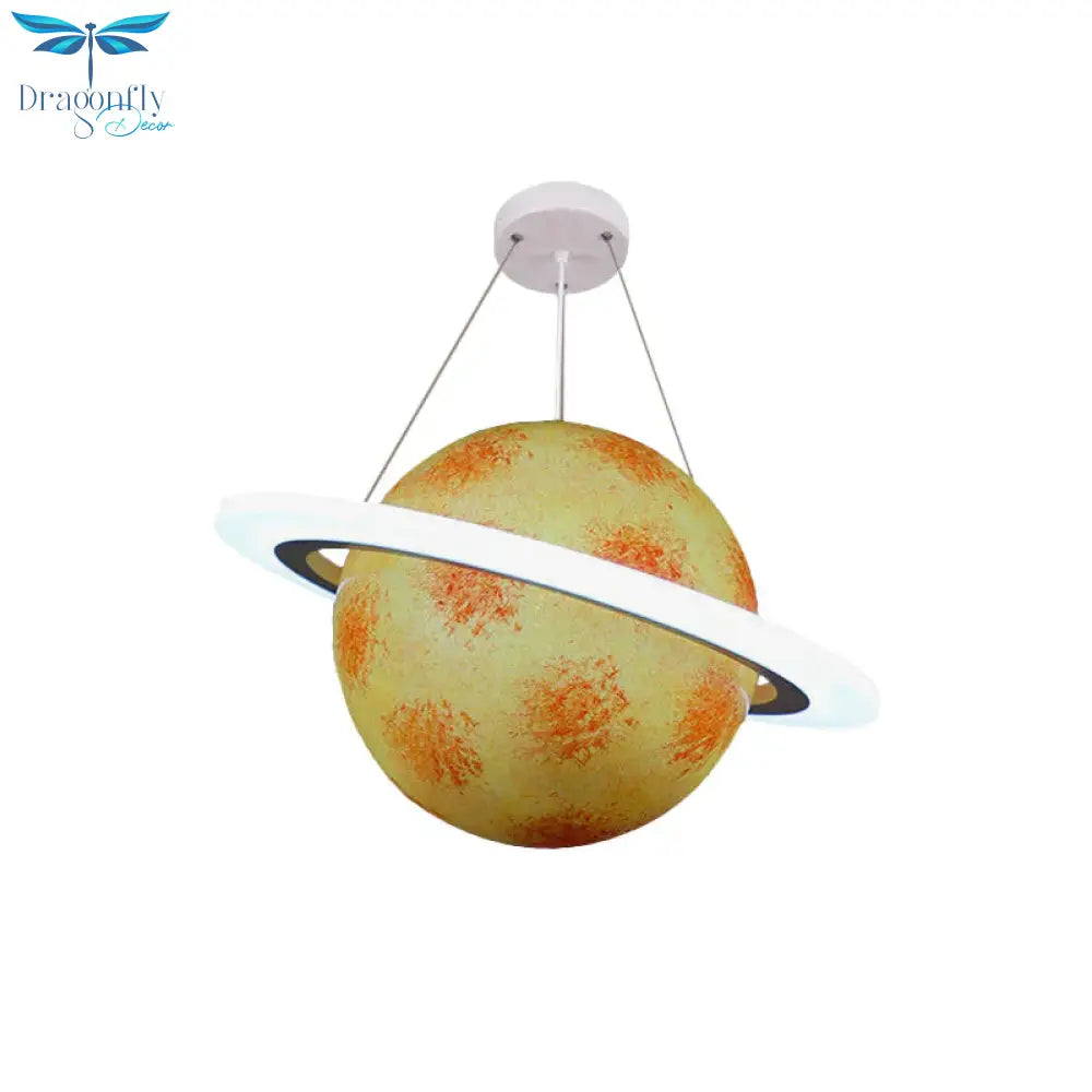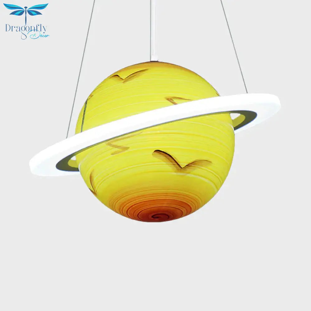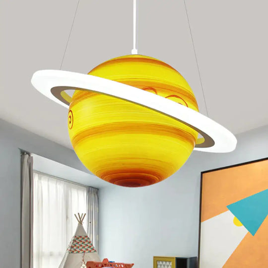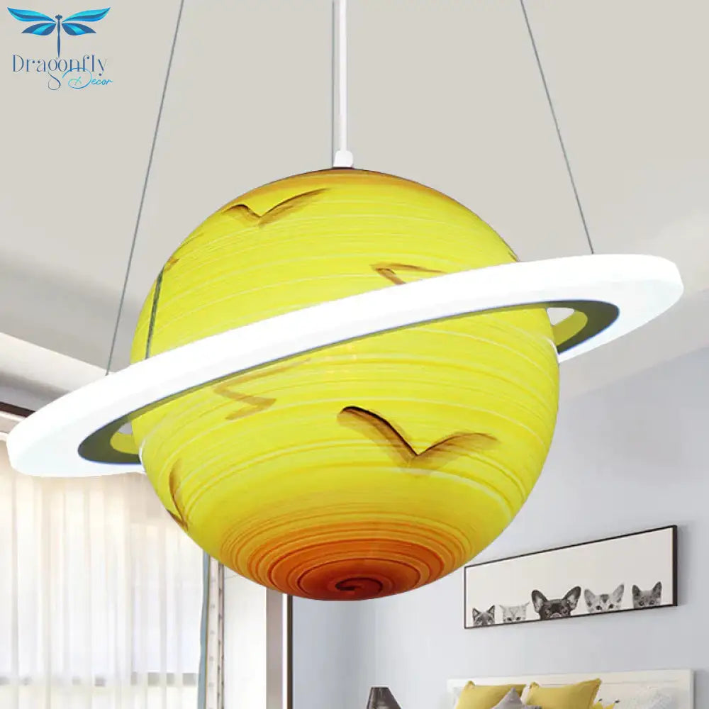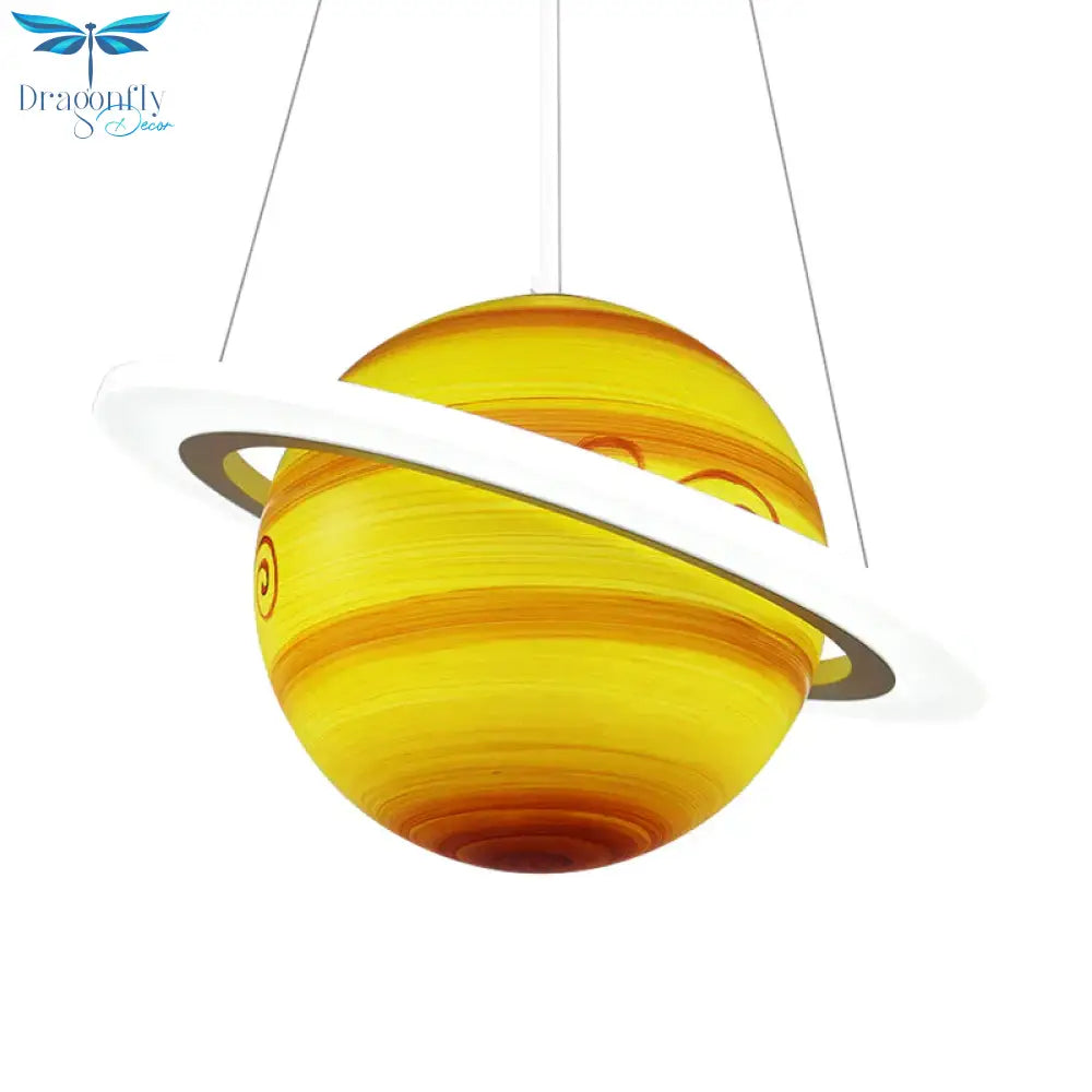 Kids 1 Bulb Suspension Light Yellow-Brown Jupiter/Blue Earth/Orange Sun Globe Pendant Chandelier with Acrylic Shade