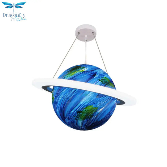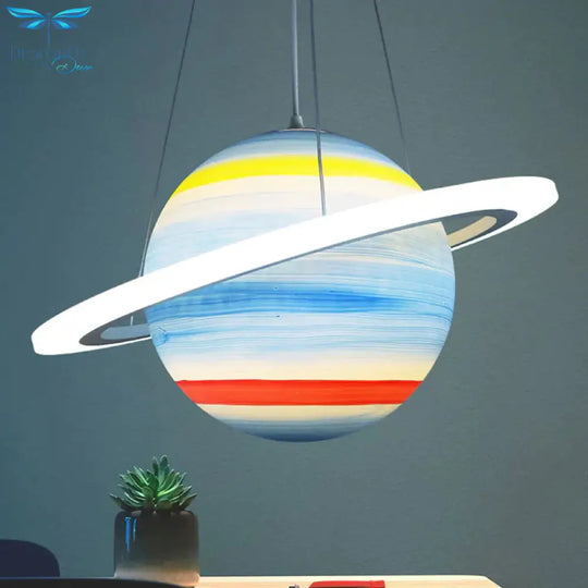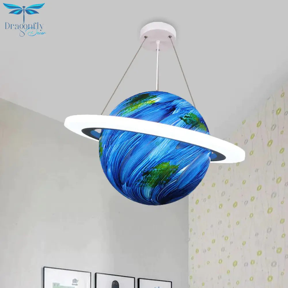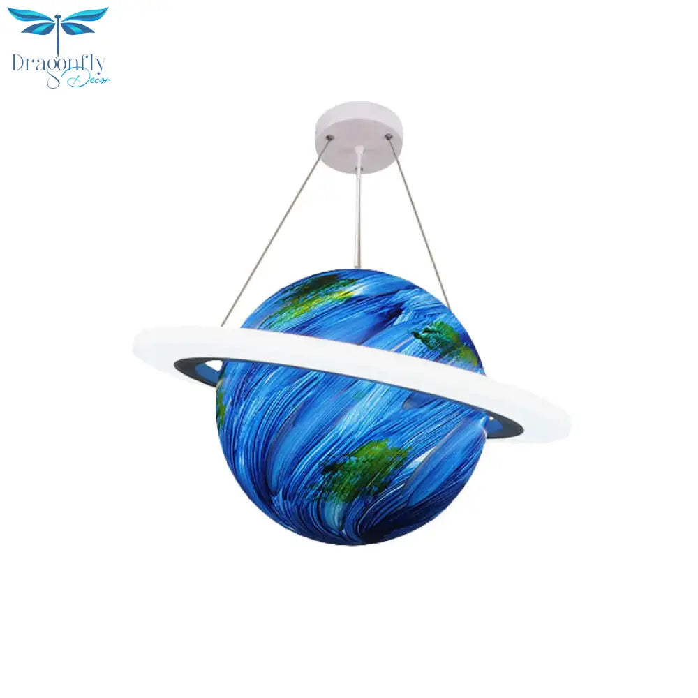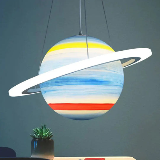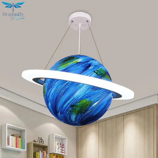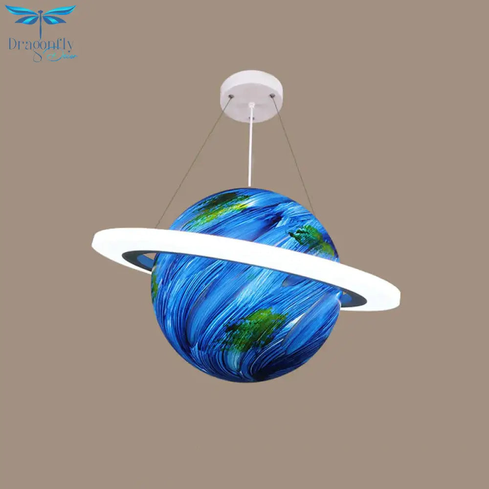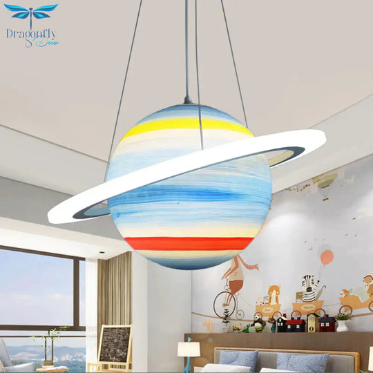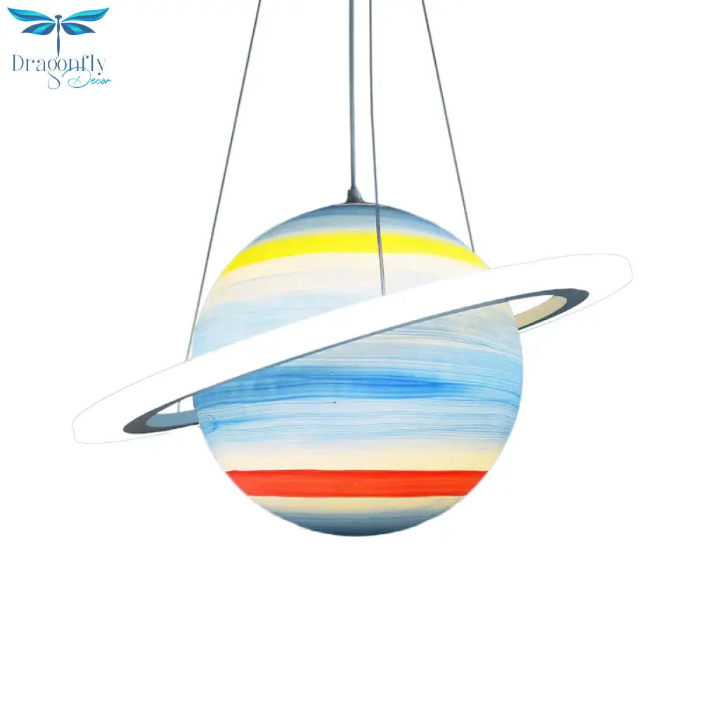 Kids 1 Bulb Suspension Light Yellow-Brown Jupiter/Blue Earth/Orange Sun Globe Pendant Chandelier with Acrylic Shade