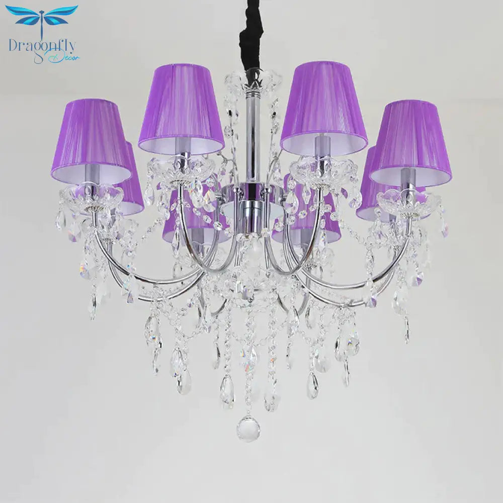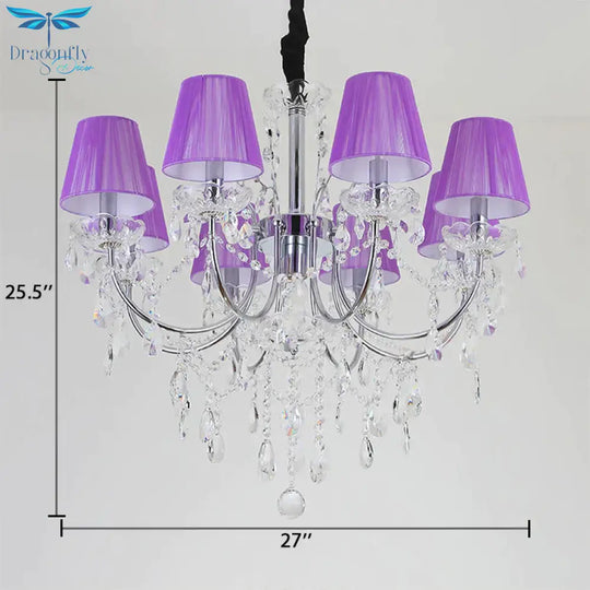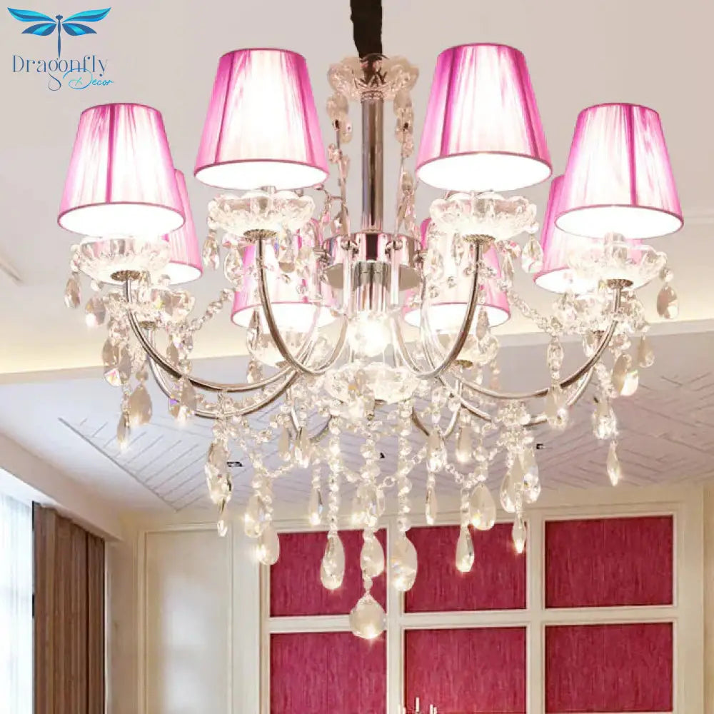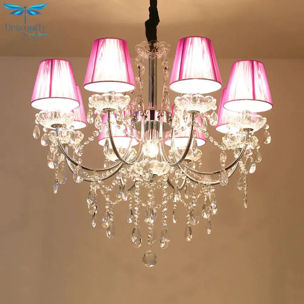 Kids Bedroom Lighting Crystal Chandelies 8 Light Fabric Shade Hanging
