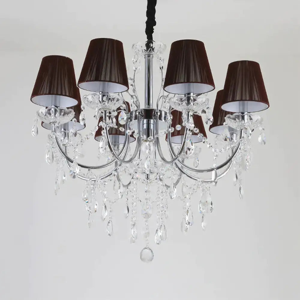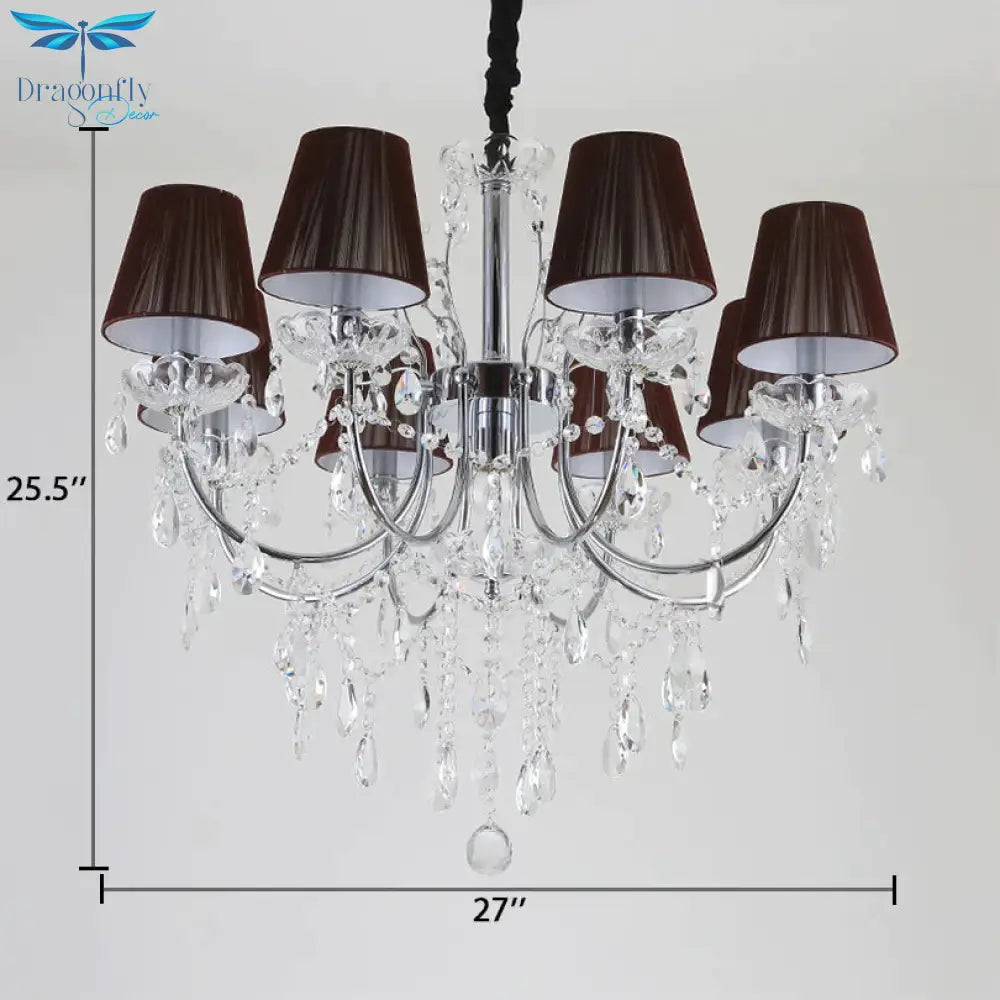 Kids Bedroom Lighting Crystal Chandelies 8 Light Fabric Shade Hanging Light in Nickel Finish