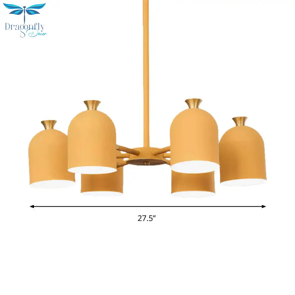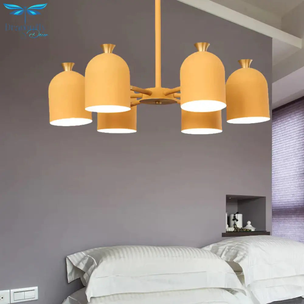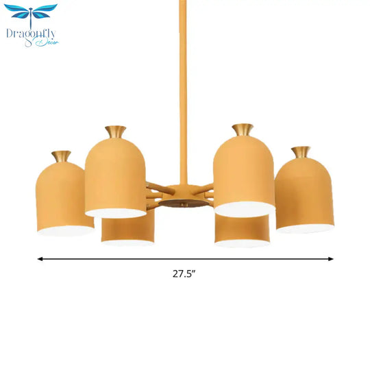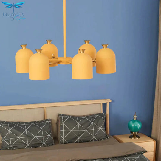 Kids Cup Shade Hanging Light Metal Six Lights Yellow Chandelier for Adult Bedroom