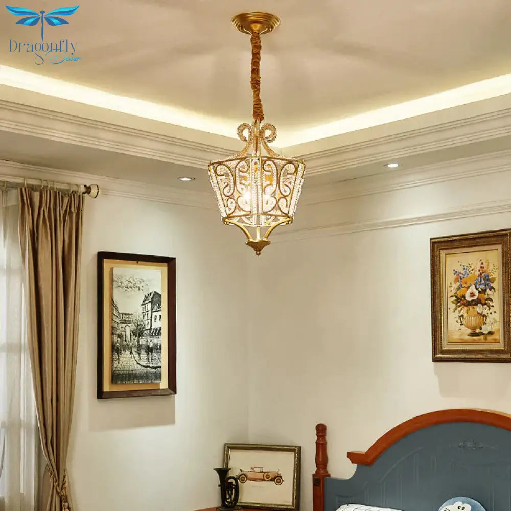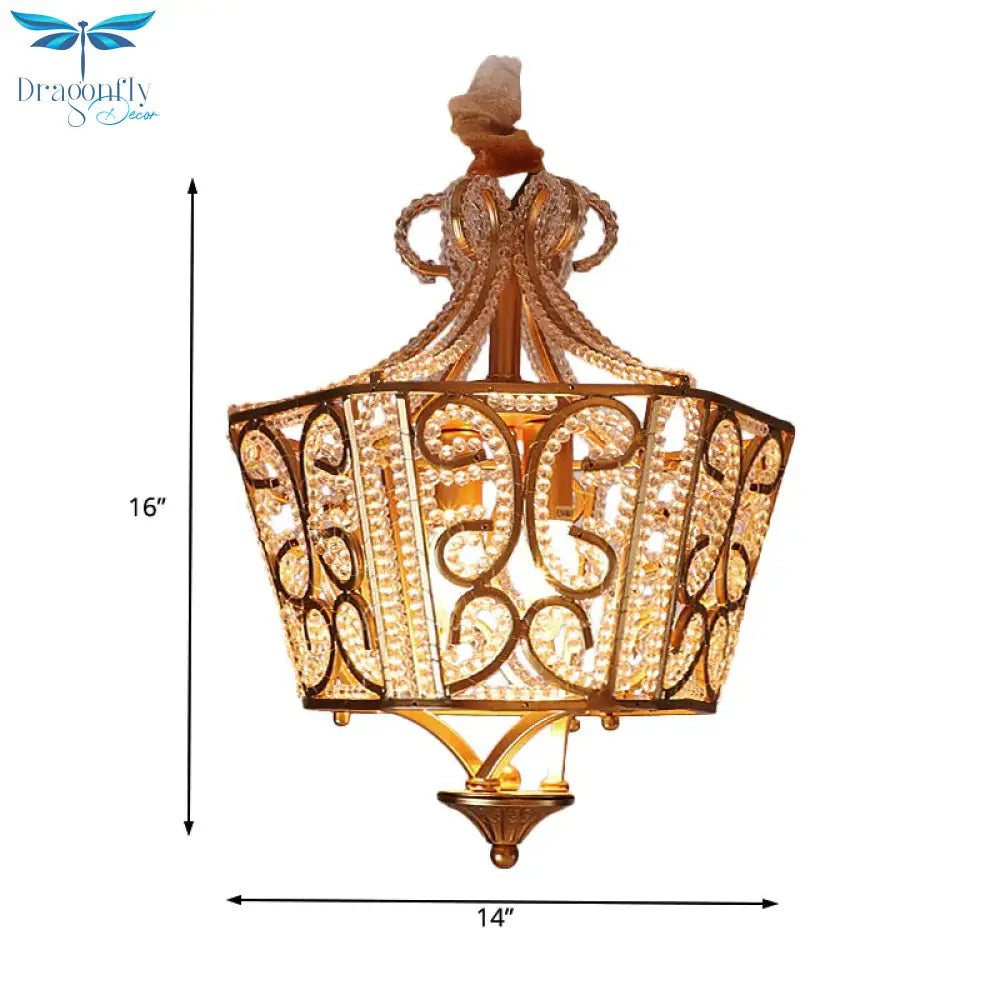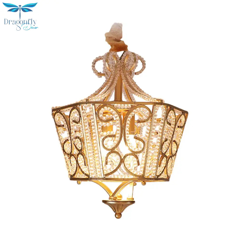 Lantern Crystal Chandelier Lighting Rustic 2 Lights Bedroom Pendant Lighting in Gold