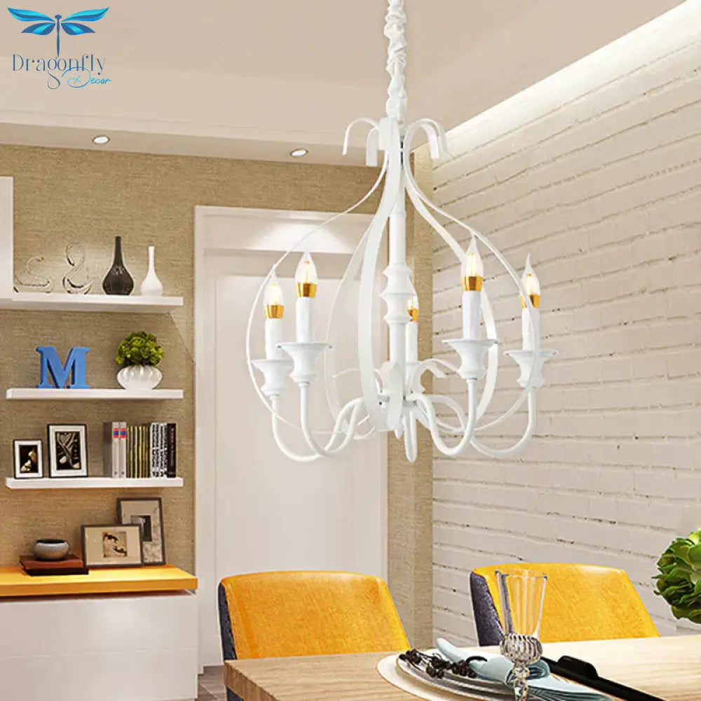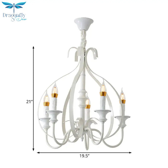 Metal Branch Chandelier Modernism 5 Heads White Pendant Lighting Fixture for Dining Room