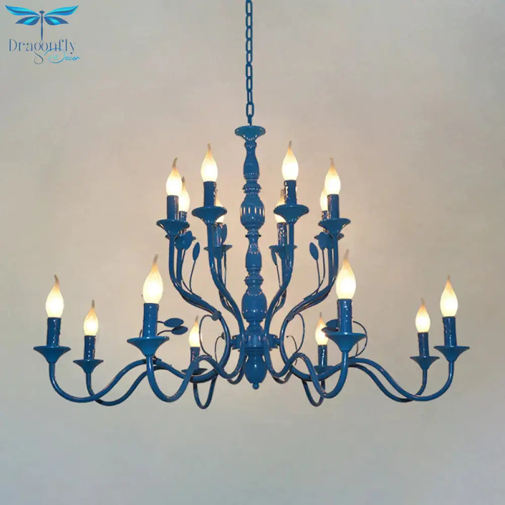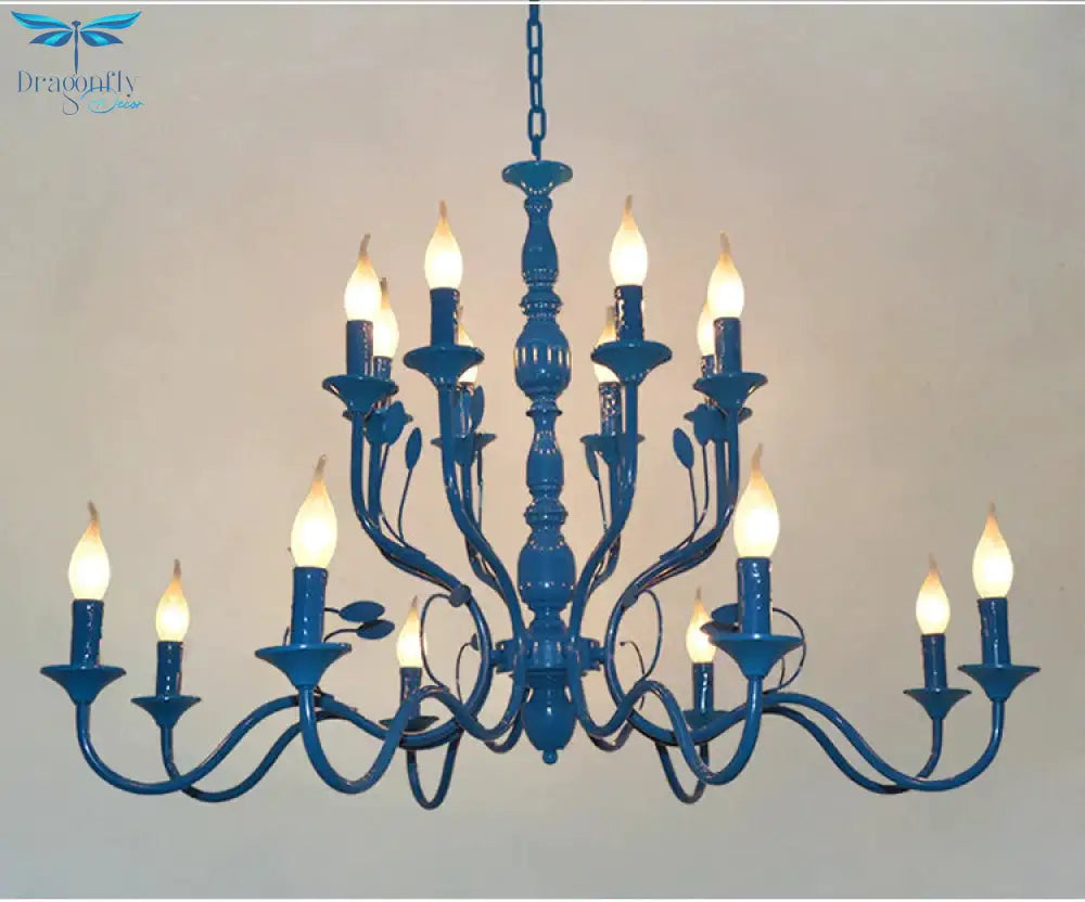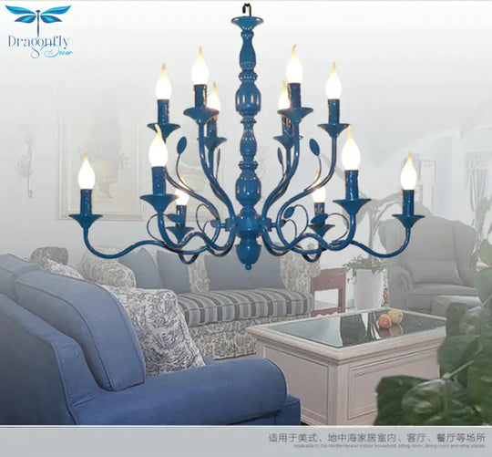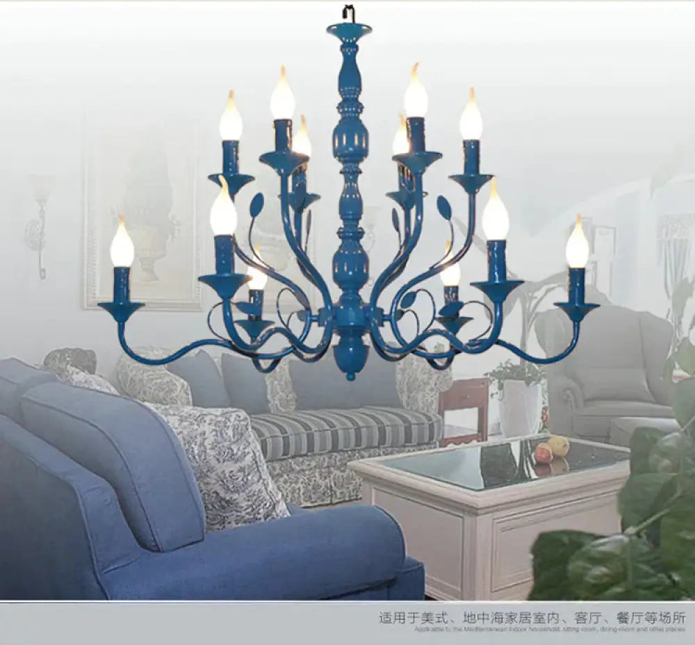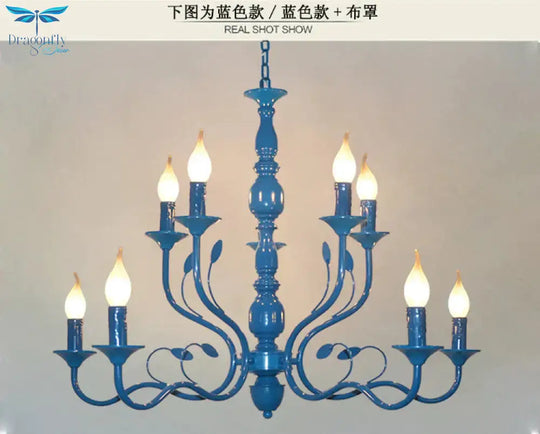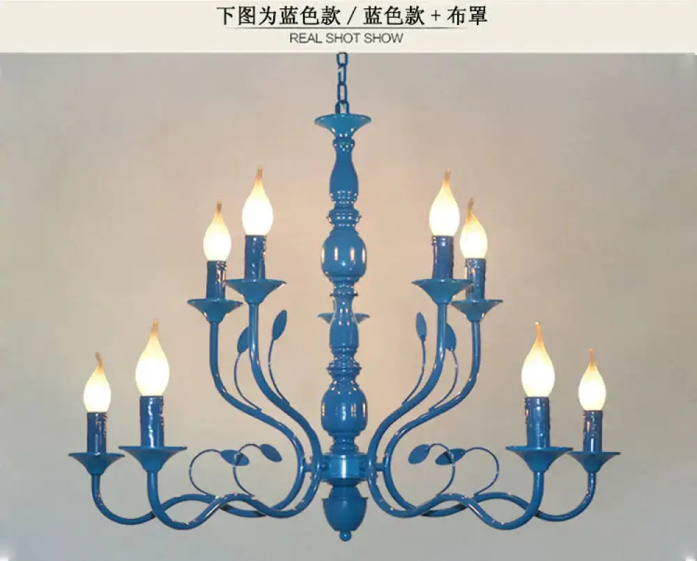 Metal Candle Shape Pendant Chandelier Vintage 10/12/16 Lights Restaurant Hanging Ceiling Lamp in Blue