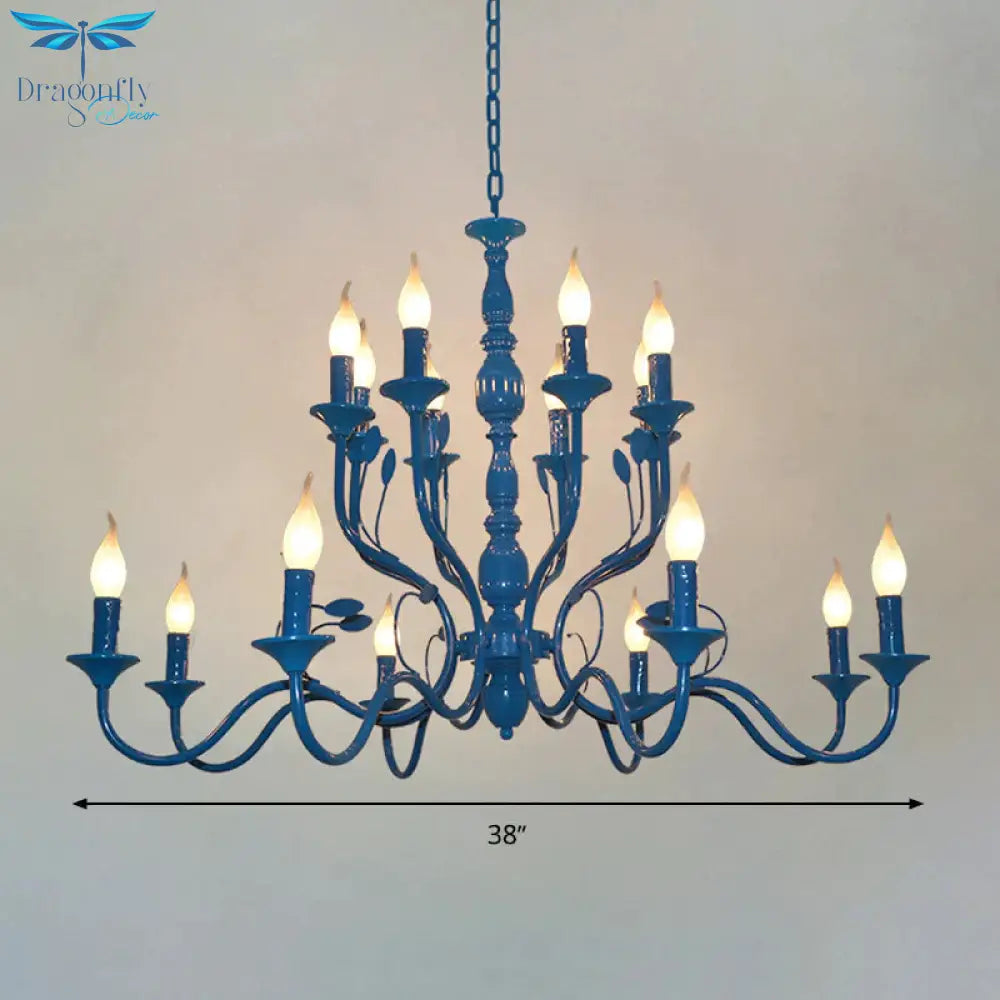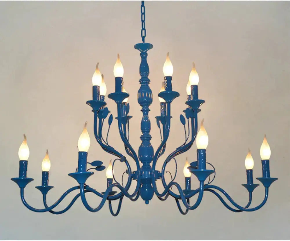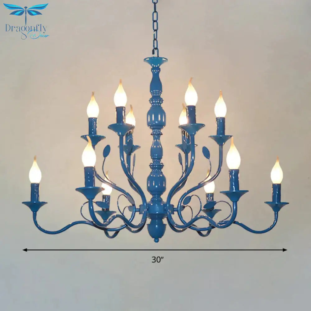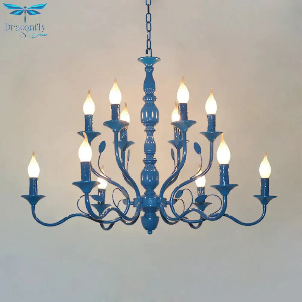 Metal Candle Shape Pendant Chandelier Vintage 10/12/16 Lights Restaurant Hanging Ceiling Lamp in Blue