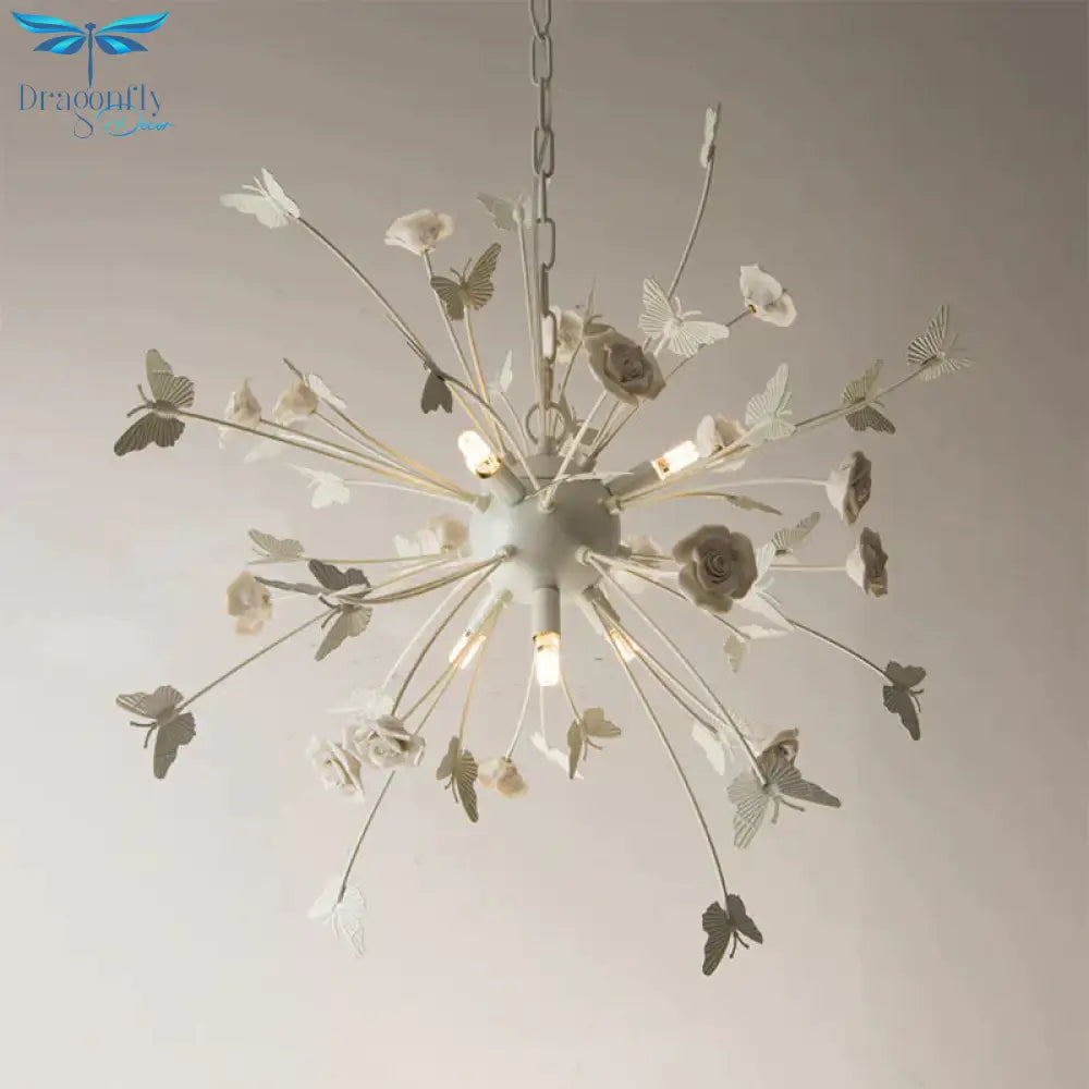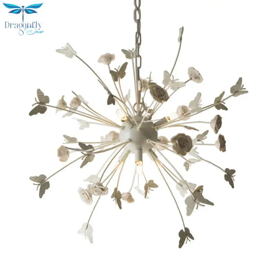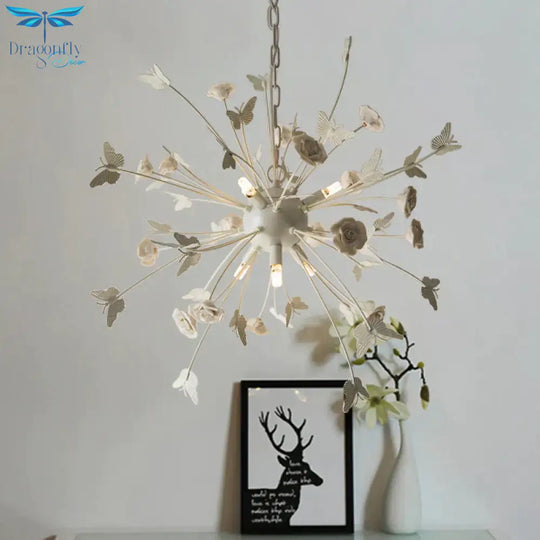 Metal Flower Chandelier Lamp Minimalism LED White-Silver Pendant Light