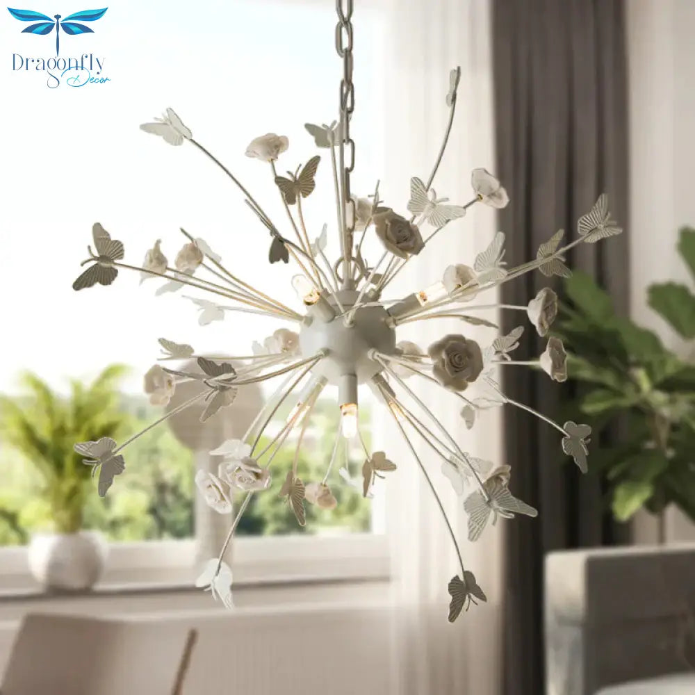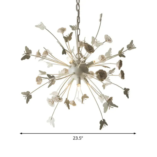 Metal Flower Chandelier Lamp Minimalism LED White-Silver Pendant Lighting Fixture with Adjustable Chain
