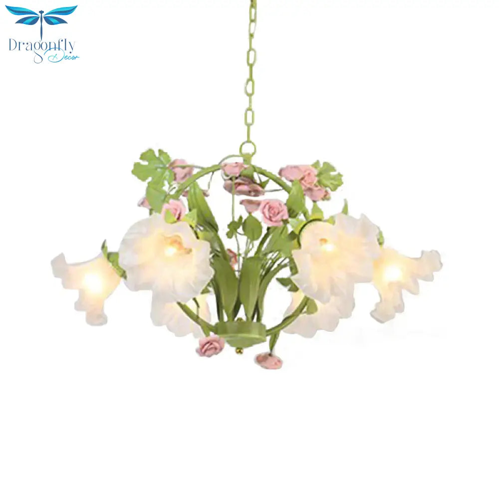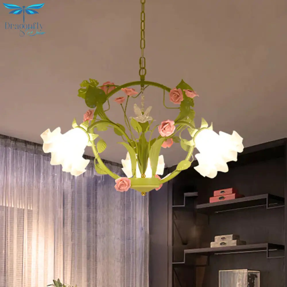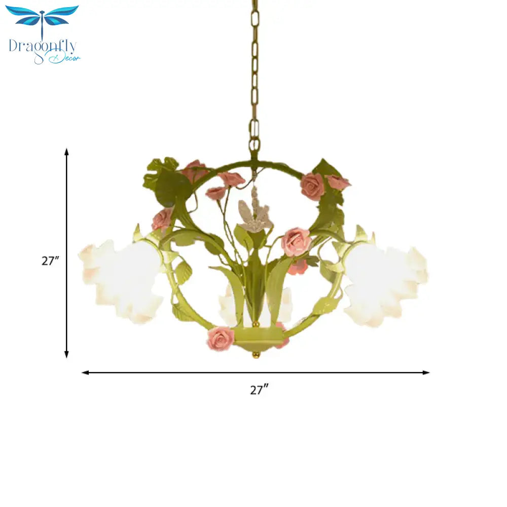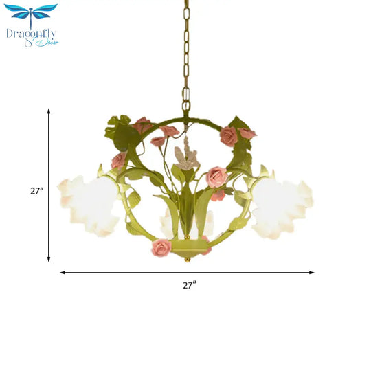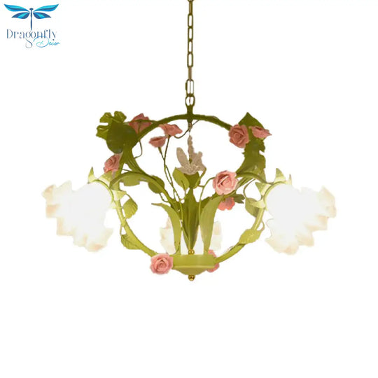 Metal Green Chandelier Lighting Circular 3/6 Heads Country Style Rose