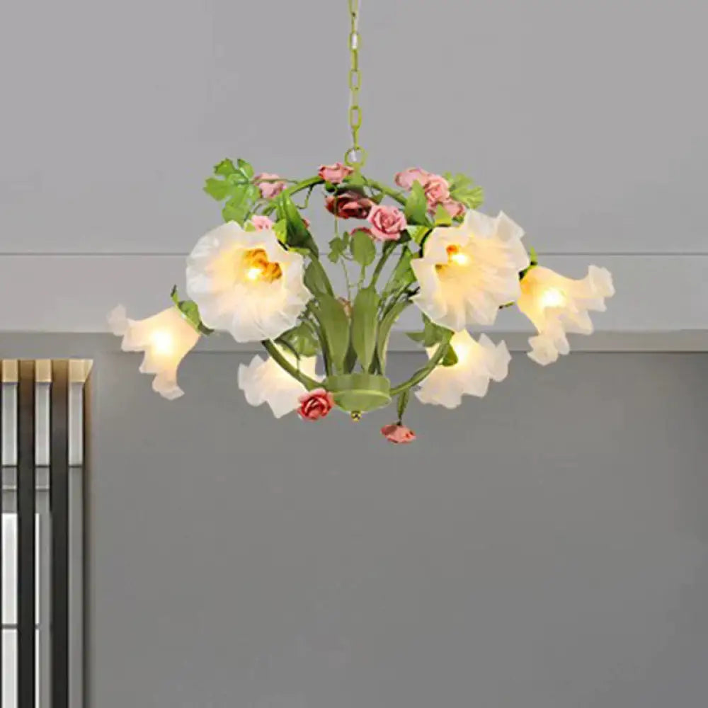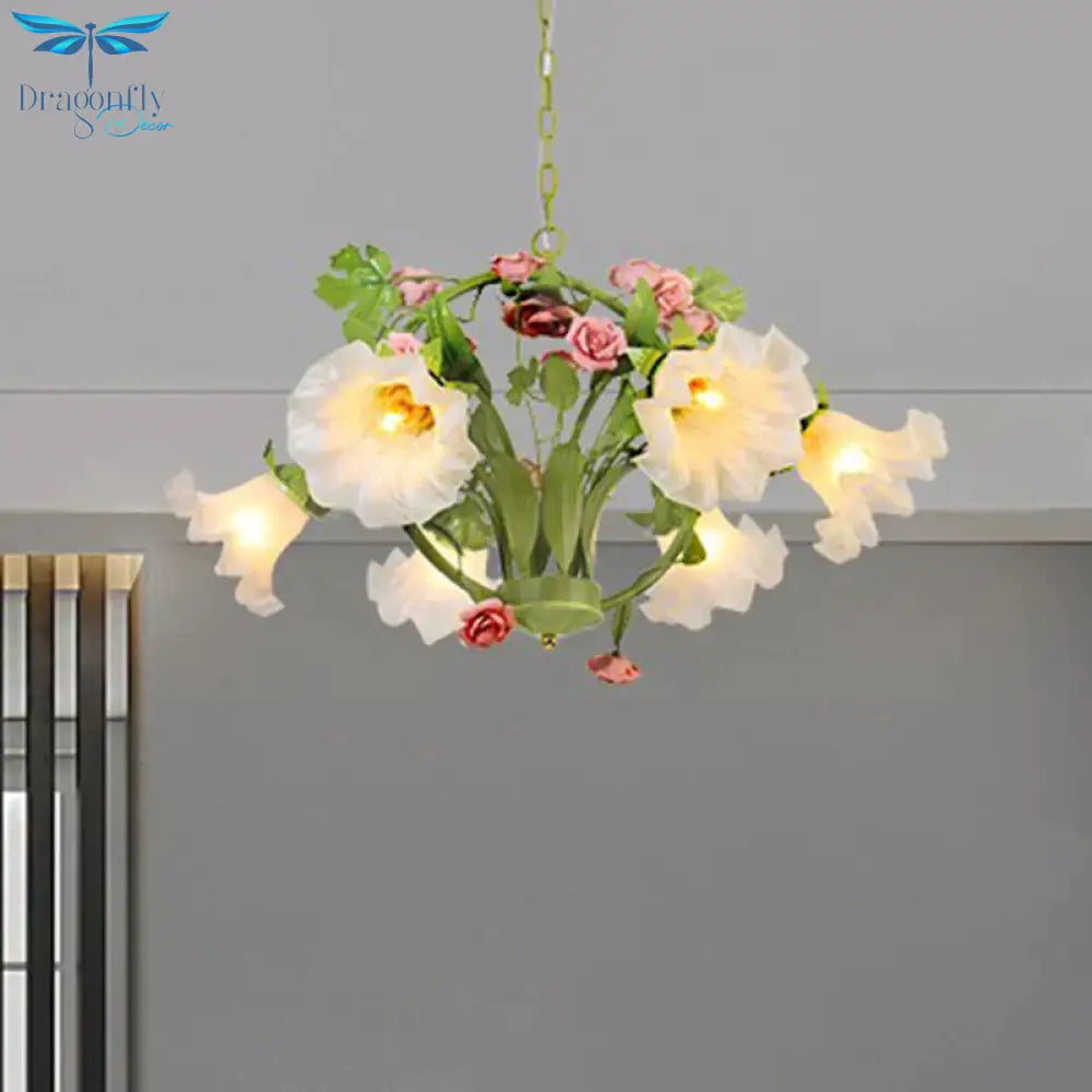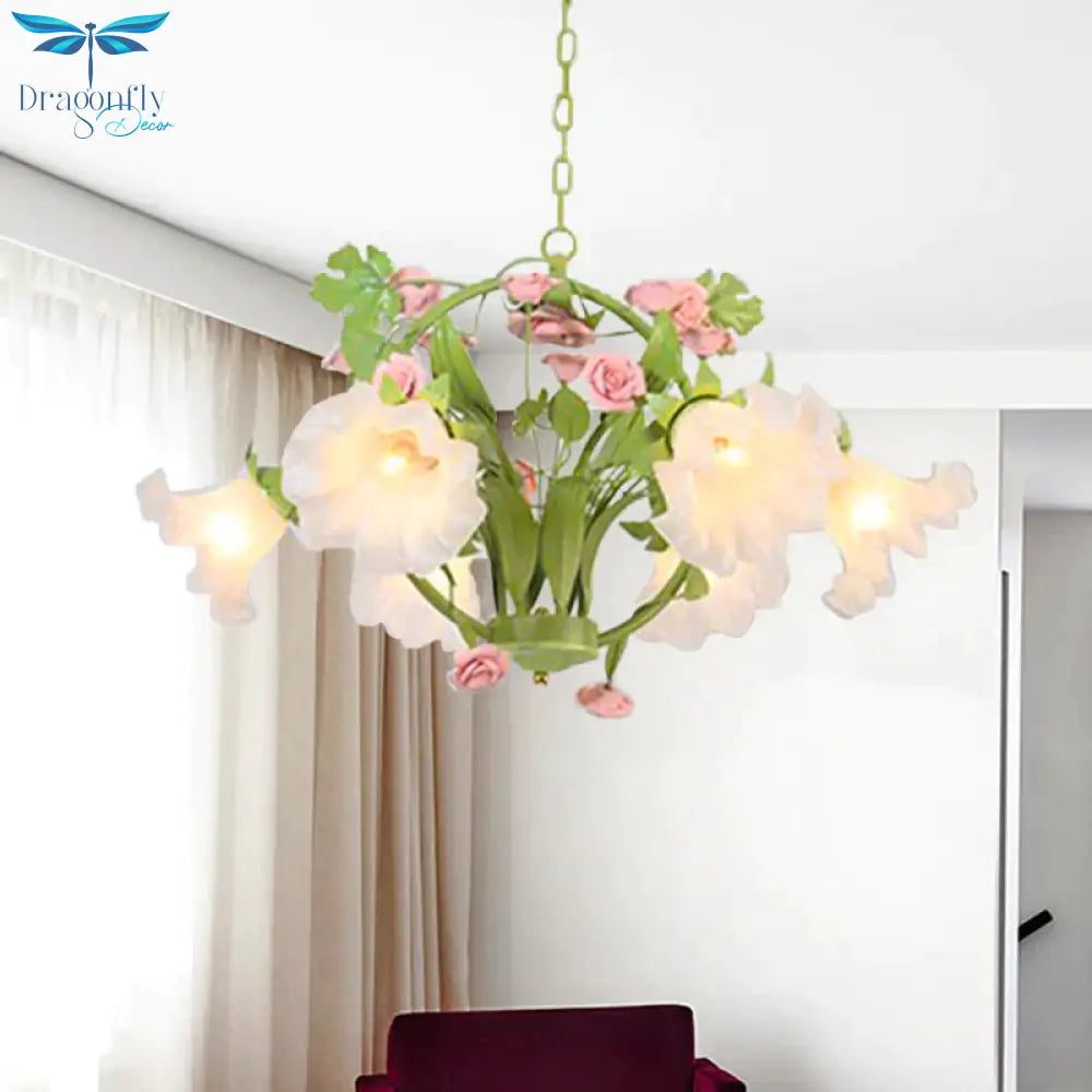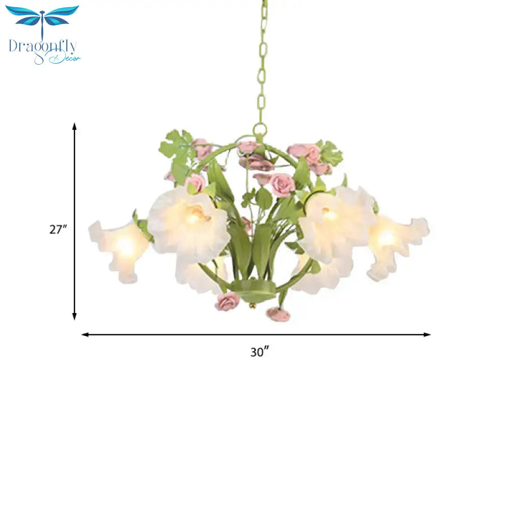 Metal Green Chandelier Lighting Circular 3/6 Heads Country Style Rose