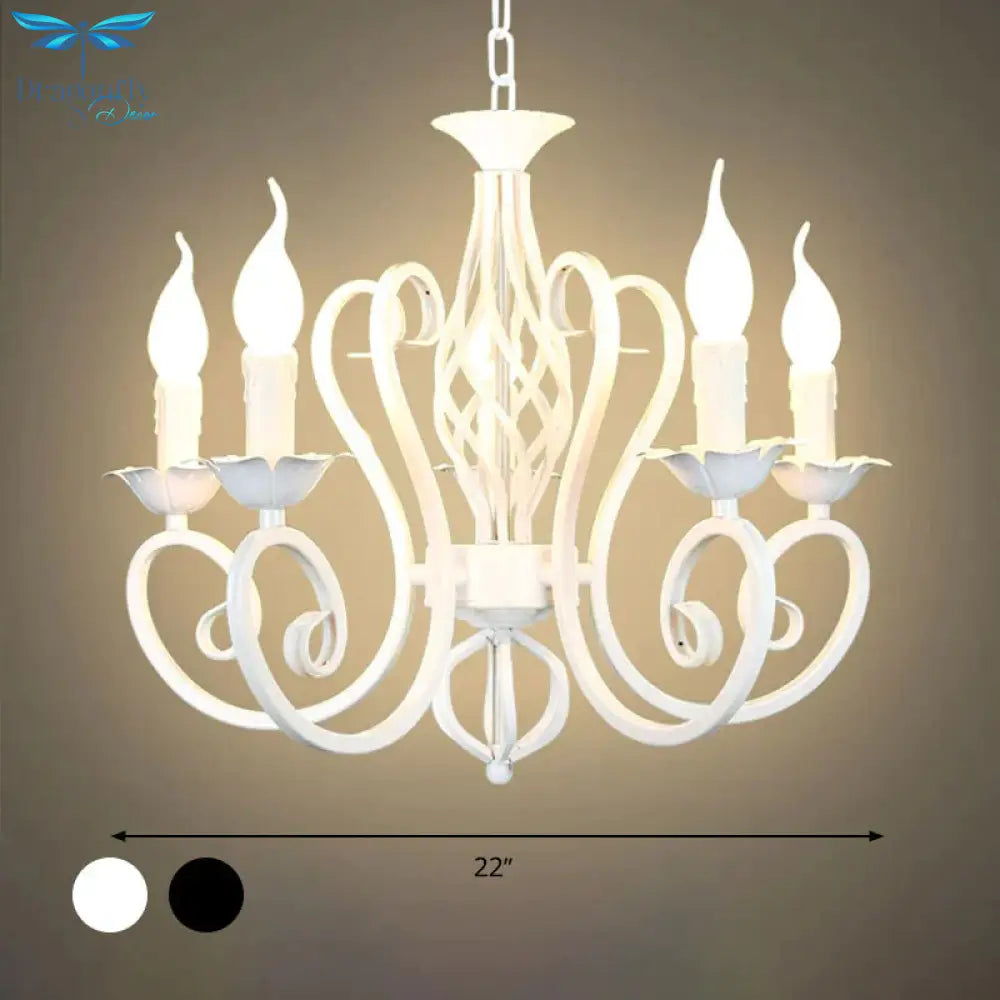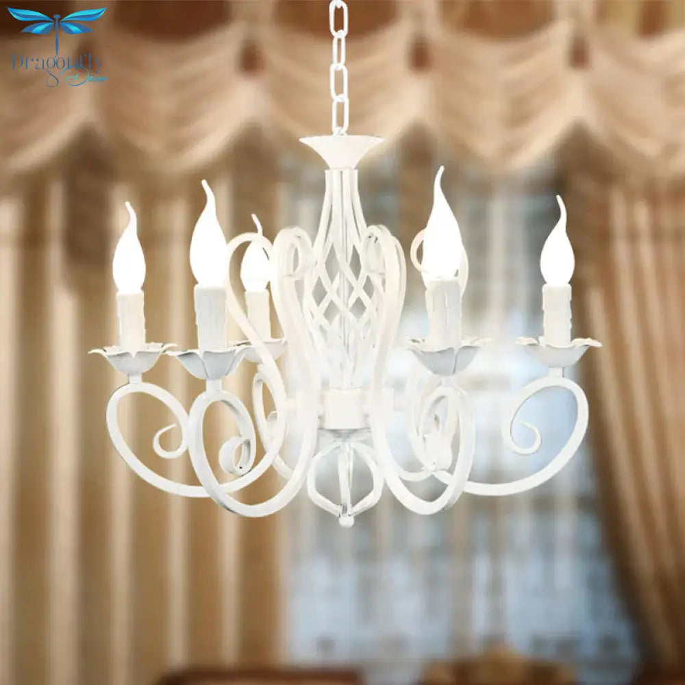 Metal Sputnik Chandelier Lighting Traditional 3/5/6 Lights Living Room Hanging Ceiling Lamp in White/Green