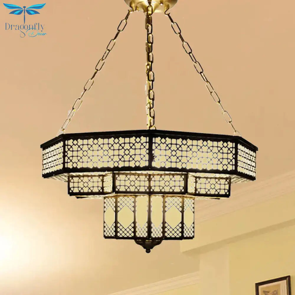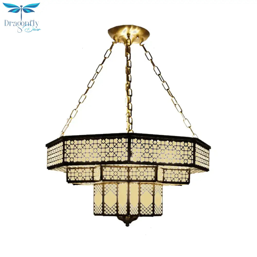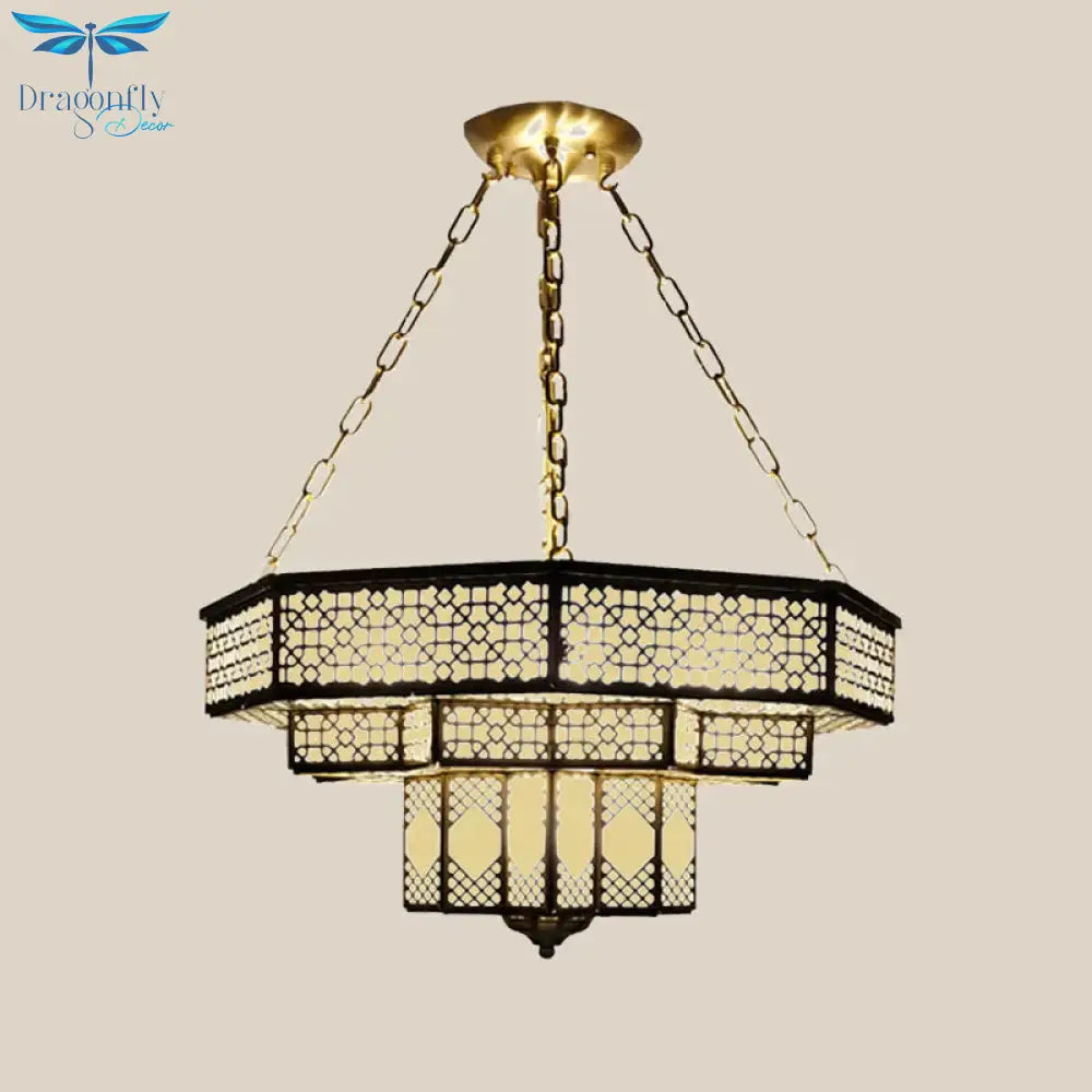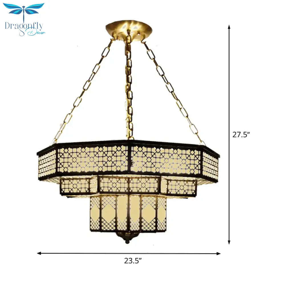 Metallic Brass Flush Lamp Fixture Geometric 7 Lights Traditional Semi Flush Mount Lamp