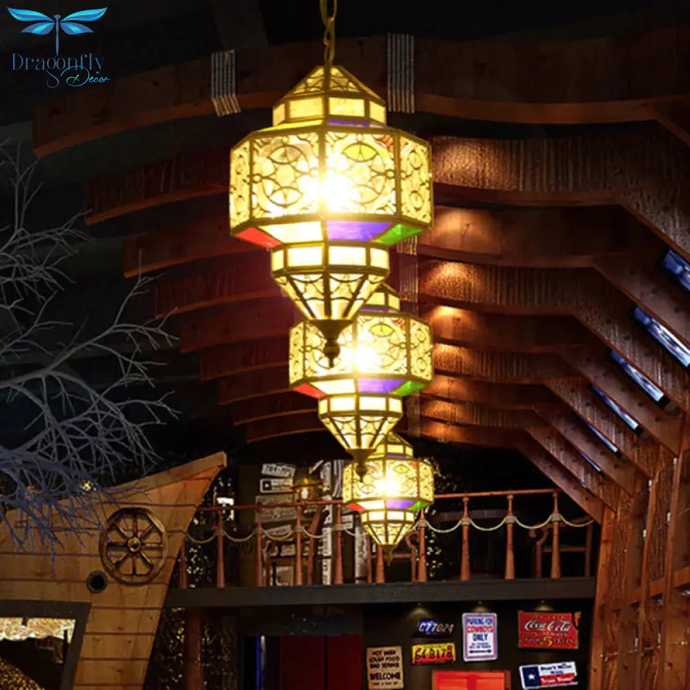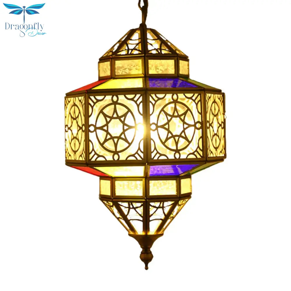 Metallic Brass Pendant Light Lantern 1-Head Southeast Asia Hanging Lamp with Clear Glass Shade