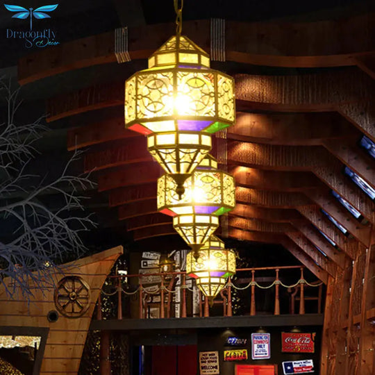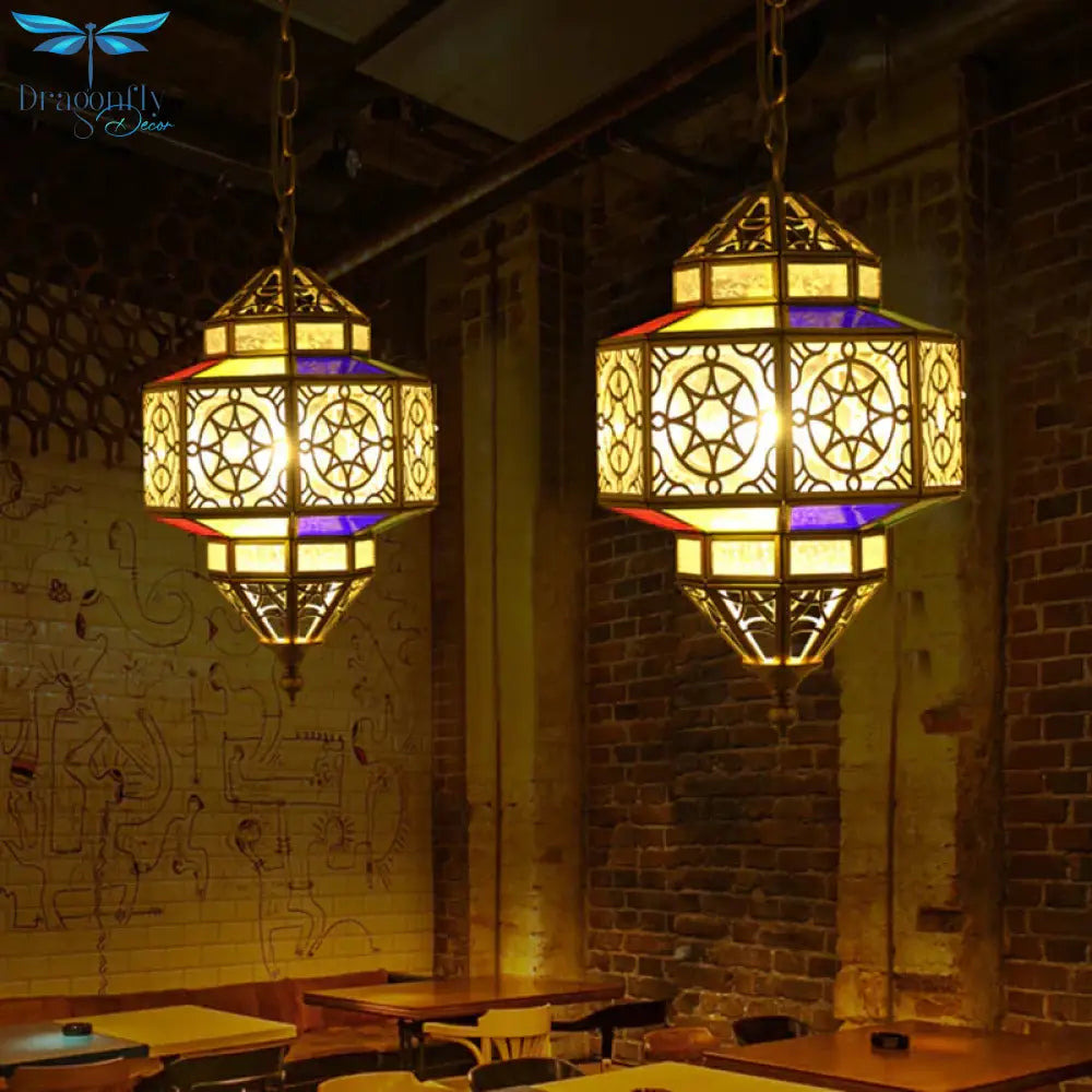 Metallic Brass Pendant Light Lantern 1-Head Southeast Asia Hanging Lam